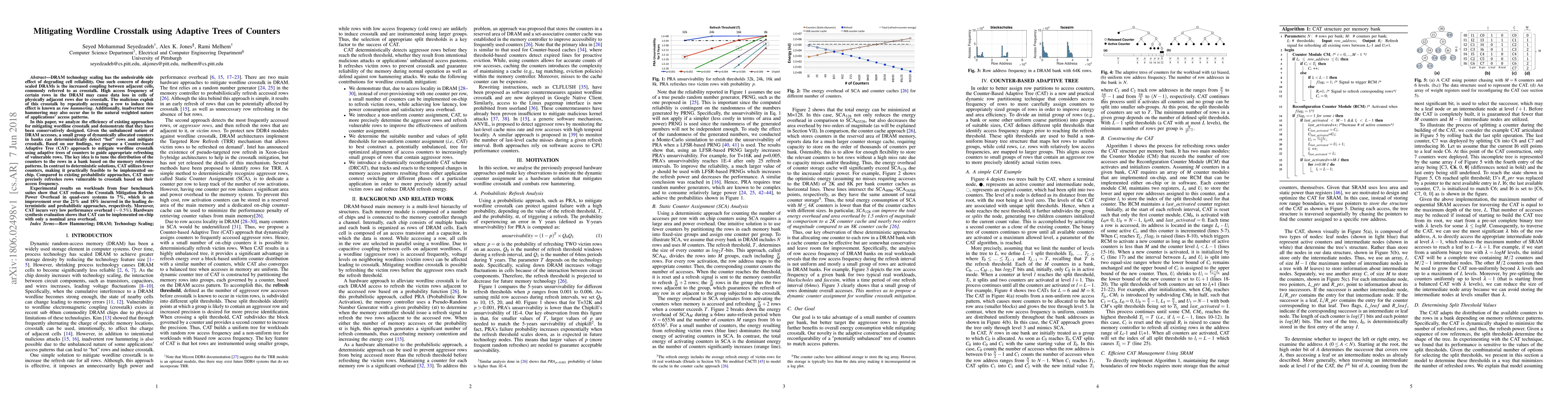 This paper proposes a Counter-based Adaptive Tree (CAT) approach to mitigate wordline crosstalk in DRAM using adaptive trees of counters, which dynamically allocate counters to detect and refresh vulnerable rows based on access patterns, achieving a 7% reduction in refresh power overhead compared to existing methods. CAT incurs minimal performance overhead and can be implemented on-chip with minimal area overhead.
