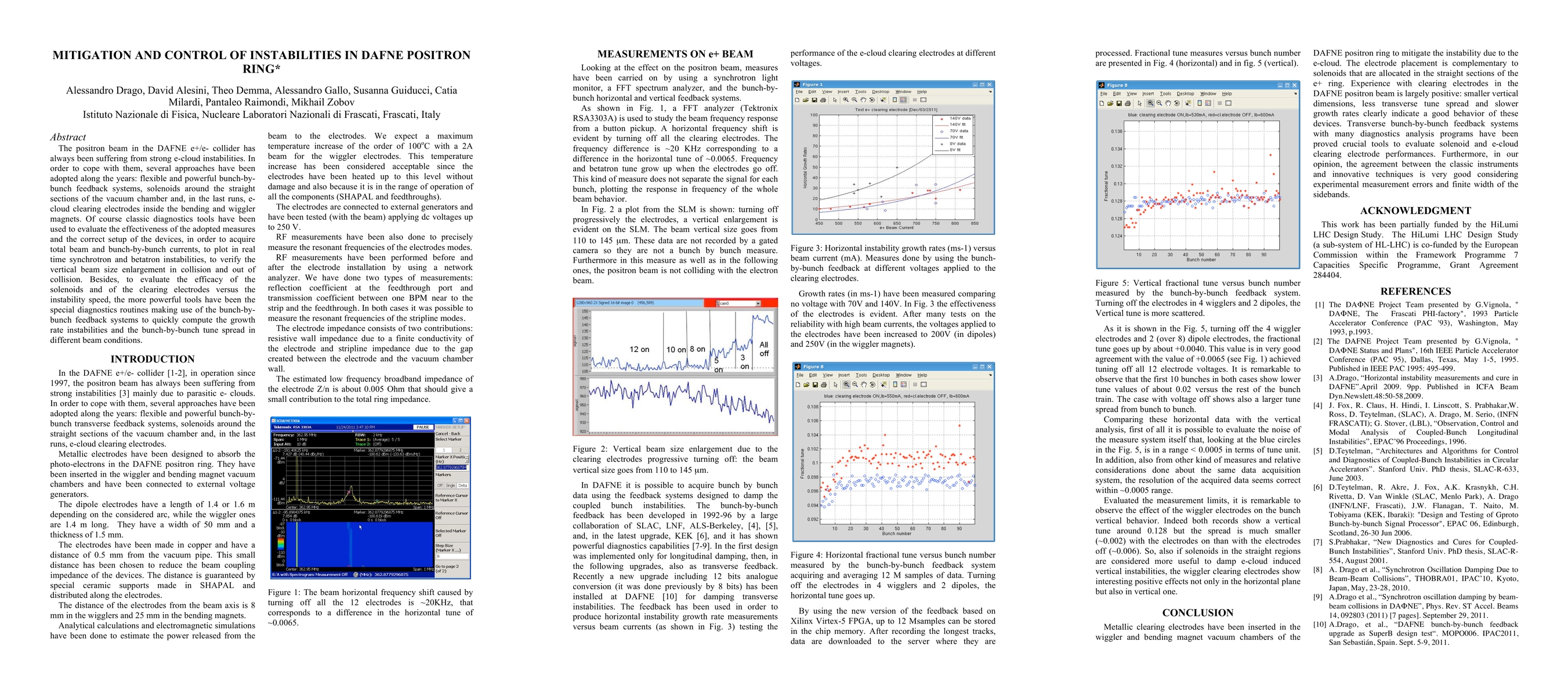 The positron beam in the DAFNE e+/e- collider has always been suffering from strong e-cloud instabilities. In order to cope with them, several approaches have been adopted along the years: flexible and powerful bunch-by-bunch feedback systems, solenoids around the straight sections of the vacuum chamber and, in the last runs, e-cloud clearing electrodes inside the bending and wiggler magnets. Of course classic diagnostics tools have been used to evaluate the effectiveness of the adopted measures and the correct setup of the devices, in order to acquire total beam and bunch-by-bunch currents, to plot in real time synchrotron and betatron instabilities, to verify the vertical beam size enlargement in collision and out of collision. Besides, to evaluate the efficacy of the solenoids and of the clearing electrodes versus the instability speed, the more powerful tools have been the special diagnostics routines making use of the bunch-by-bunch feedback systems to quickly compute the growth rate instabilities and the bunch-by-bunch tune spread in different beam conditions.