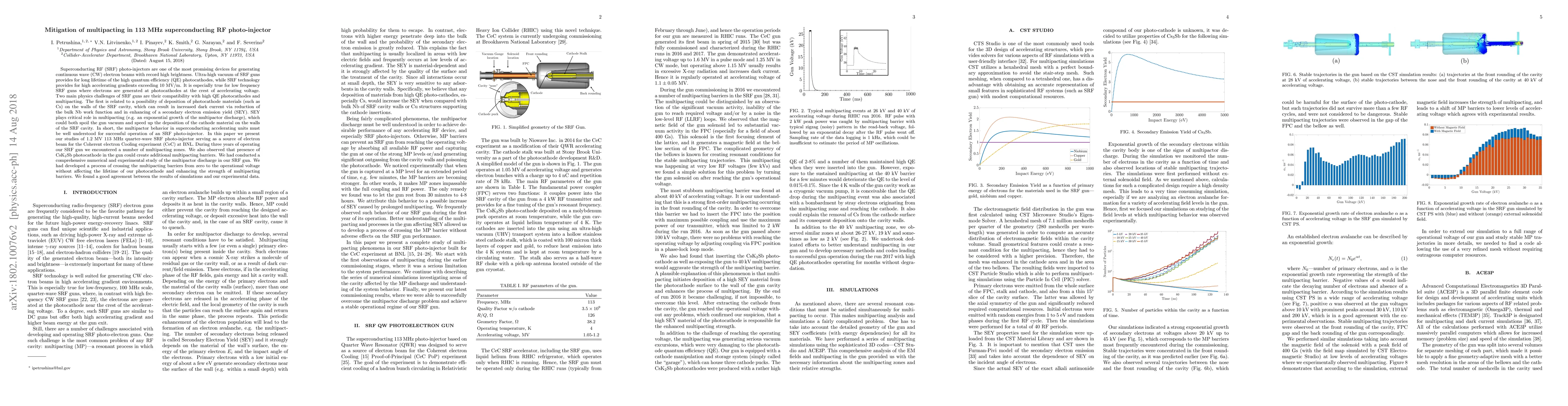 Researchers studied multipacting in a 113 MHz superconducting RF photo-injector to improve its performance, finding that using certain photocathodes can create barriers against multipacting.