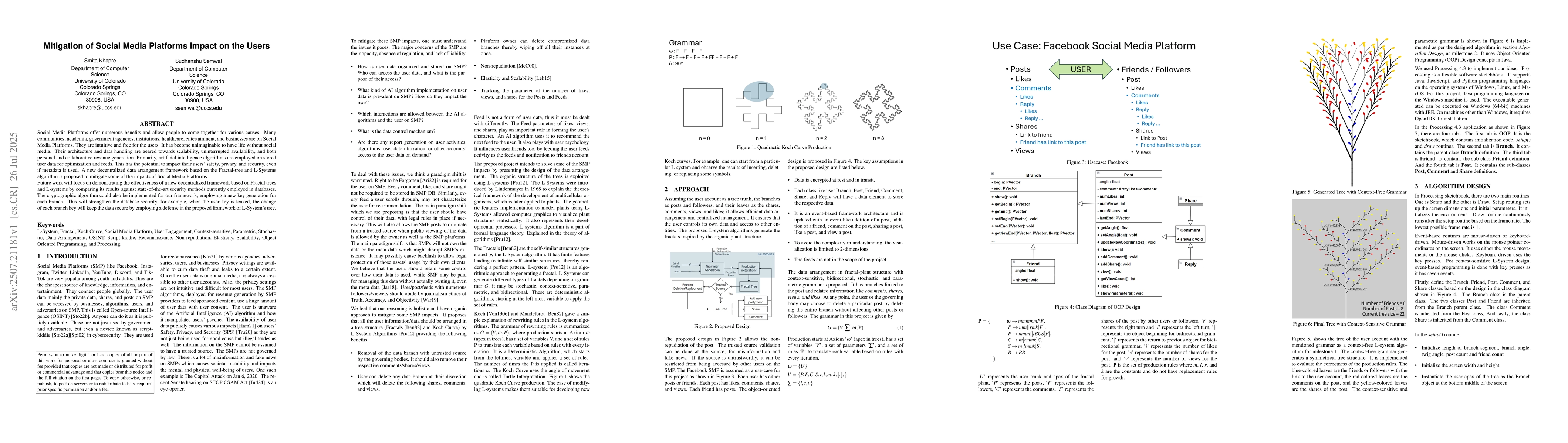 Social media platforms offer numerous benefits and allow people to come together for various causes. Many communities, academia, government agencies, institutions, healthcare, entertainment, and businesses are on social media platforms. They are intuitive and free for users. It has become unimaginable to live without social media. Their architecture and data handling are geared towards scalability, uninterrupted availability, and both personal and collaborative revenue generation. Primarily, artificial intelligence algorithms are employed on stored user data for optimization and feeds. This has the potential to impact user safety, privacy, and security, even when metadata is used. A new decentralized data arrangement framework based on the Fractal-tree and L-Systems algorithm is proposed to mitigate some of the impacts of social media platforms. Future work will focus on demonstrating the effectiveness of the new decentralized framework by comparing its results against state-of-the-art security methods currently used in databases. A cryptographic algorithm could also be implemented for the framework, employing a new key generation for each branch. This will strengthen database security; for example, if a user key is leaked, regenerating the key for each branch will keep the data secure by applying defense mechanisms in the proposed L-System-based tree framework.