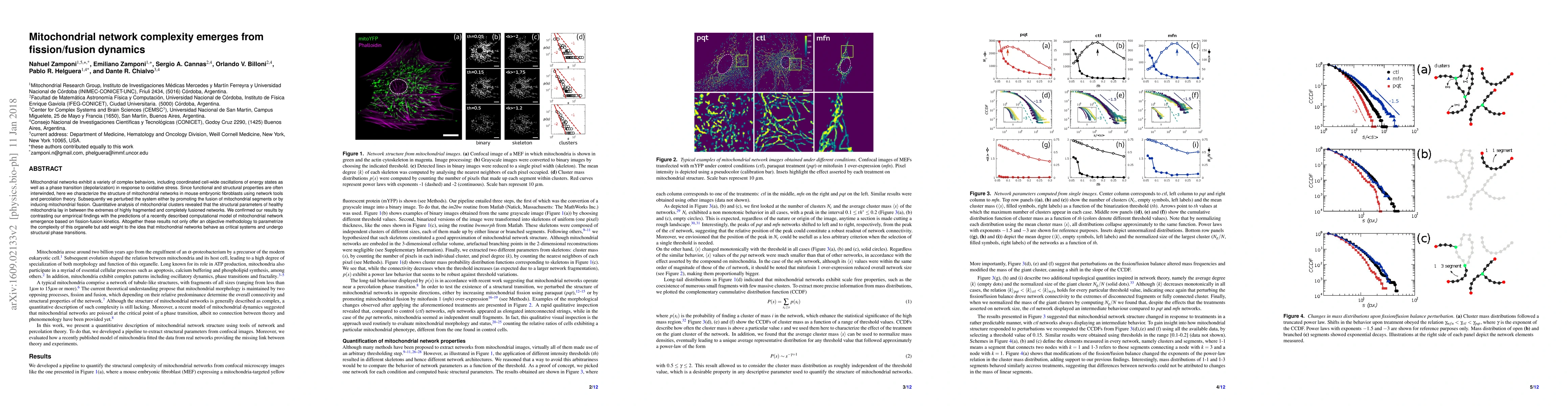 Mitochondrial networks exhibit complex behaviors, and fission/fusion dynamics determine their structure, with healthy mitochondria showing optimal balance between fragmentation and fusion.