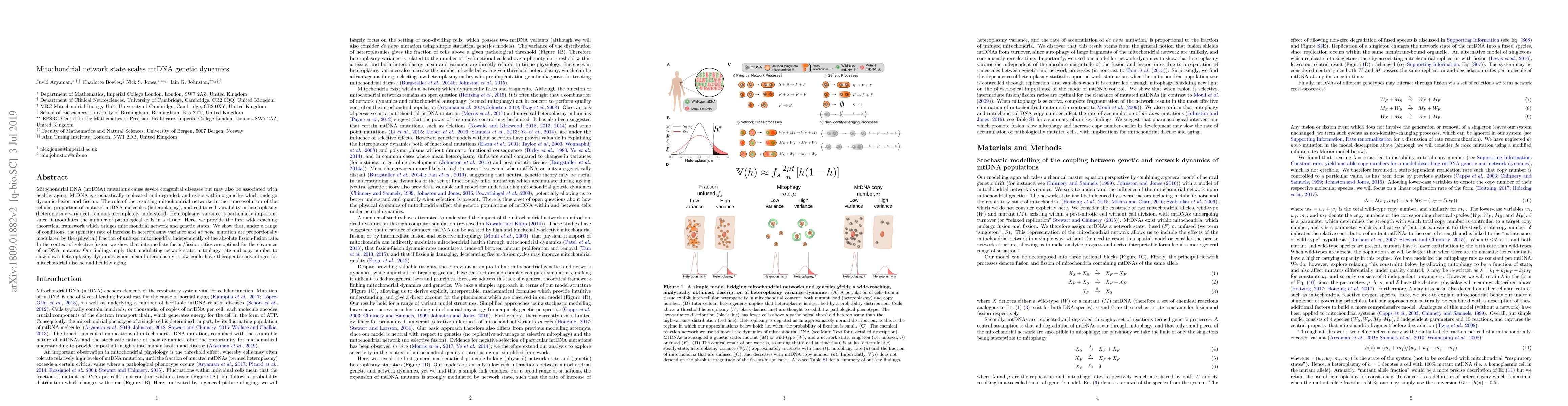 Mitochondrial DNA (mtDNA) mutations cause severe congenital diseases but may also be associated with healthy aging. MtDNA is stochastically replicated and degraded, and exists within organelles which undergo dynamic fusion and fission. The role of the resulting mitochondrial networks in the time evolution of the cellular proportion of mutated mtDNA molecules (heteroplasmy), and cell-to-cell variability in heteroplasmy (heteroplasmy variance), remains incompletely understood. Heteroplasmy variance is particularly important since it modulates the number of pathological cells in a tissue. Here, we provide the first wide-reaching theoretical framework which bridges mitochondrial network and genetic states. We show that, under a range of conditions, the (genetic) rate of increase in heteroplasmy variance and de novo mutation are proportionally modulated by the (physical) fraction of unfused mitochondria, independently of the absolute fission-fusion rate. In the context of selective fusion, we show that intermediate fusion/fission ratios are optimal for the clearance of mtDNA mutants. Our findings imply that modulating network state, mitophagy rate and copy number to slow down heteroplasmy dynamics when mean heteroplasmy is low could have therapeutic advantages for mitochondrial disease and healthy aging.