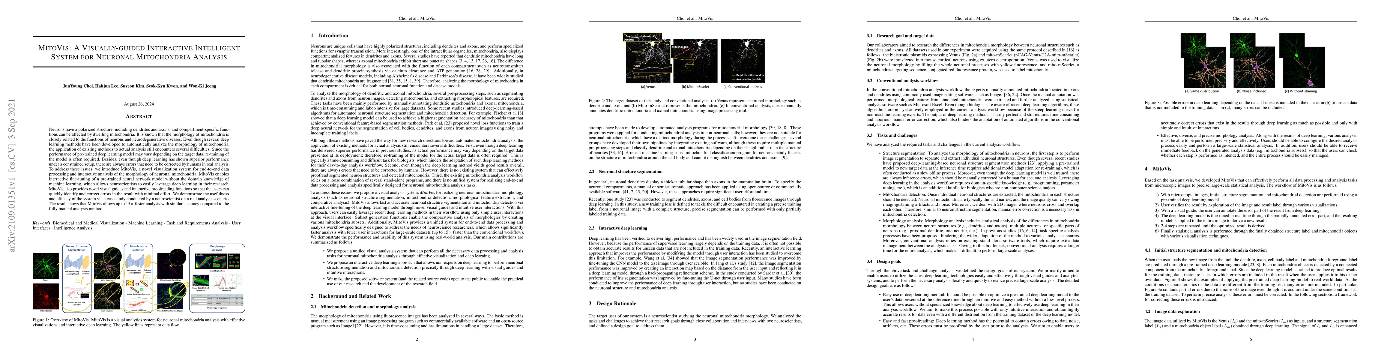 MitoVis is a novel visualization system that enables neuroscientists to quickly analyze and correct errors in mitochondrial morphology analysis, achieving up to 15x faster results with similar accuracy compared to manual methods.