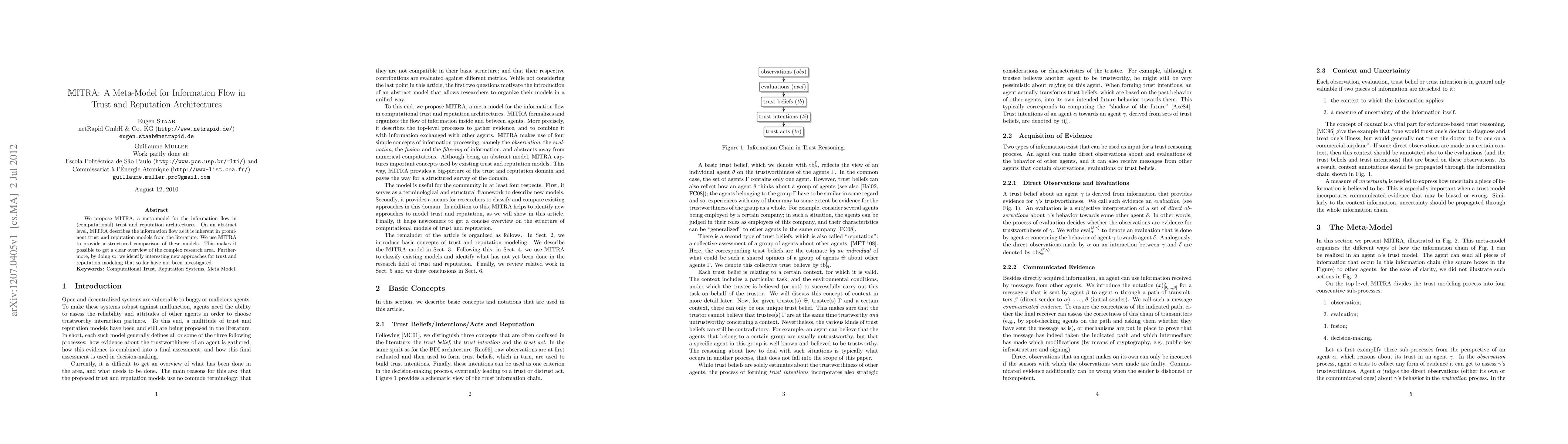 We propose MITRA, a meta-model for the information flow in (computational) trust and reputation architectures. On an abstract level, MITRA describes the information flow as it is inherent in prominent trust and reputation models from the literature. We use MITRA to provide a structured comparison of these models. This makes it possible to get a clear overview of the complex research area. Furthermore, by doing so, we identify interesting new approaches for trust and reputation modeling that so far have not been investigated.