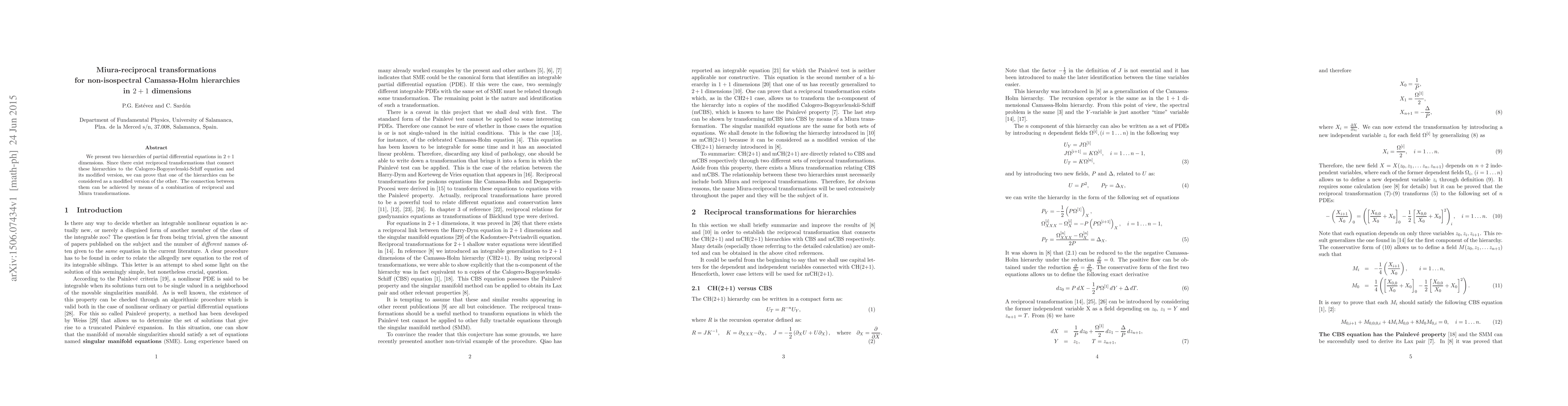 This paper explores two hierarchies of $2+1$ dimensional partial differential equations linked by reciprocal transformations to the Calogero-Bogoyavlenski-Schiff equation. It demonstrates that one hierarchy can be viewed as a modified version of the other through a combination of reciprocal and Miura transformations.