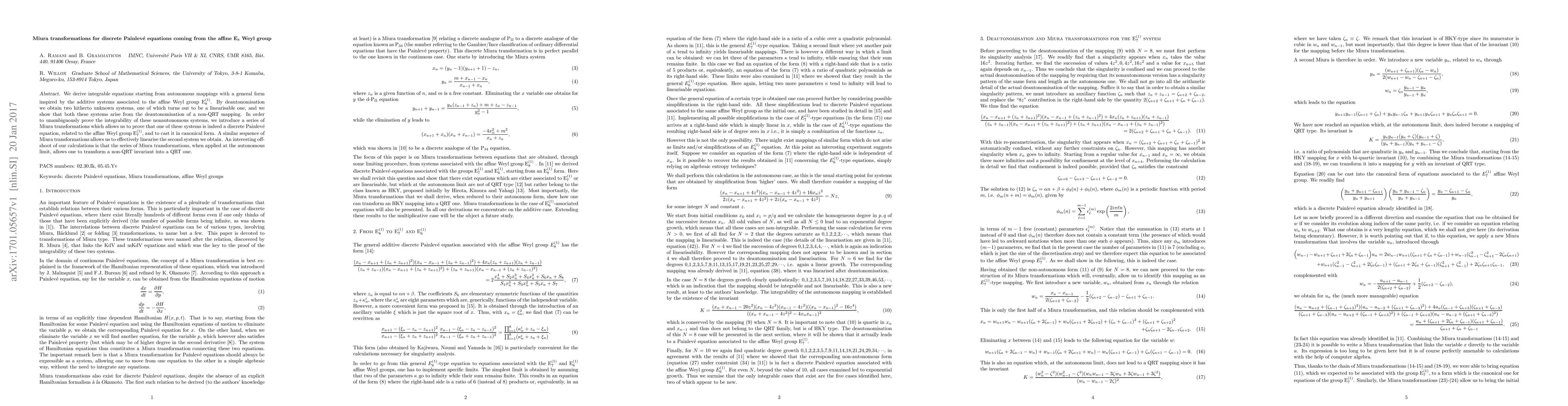 Researchers derive integrable discrete Painlevé equations from a mapping inspired by the affine E8 Weyl group, using Miura transformations to prove their integrability and linearisability.