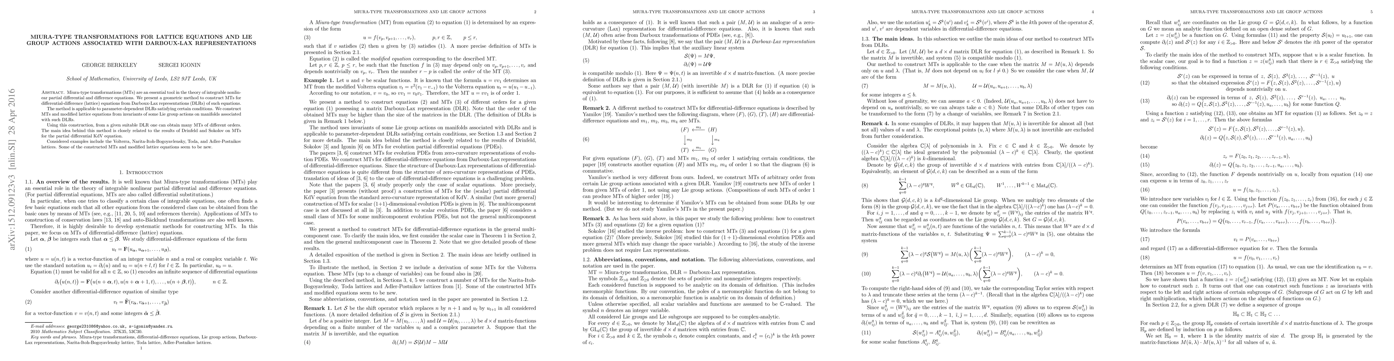 This paper presents a geometric method to construct Miura-type transformations for lattice equations from Darboux-Lax representations, applicable to parameter-dependent representations under certain conditions. The method leverages Lie group actions on associated manifolds to derive transformations and modified lattice equations, with examples including the Volterra and Toda lattices, some of which appear to be novel.