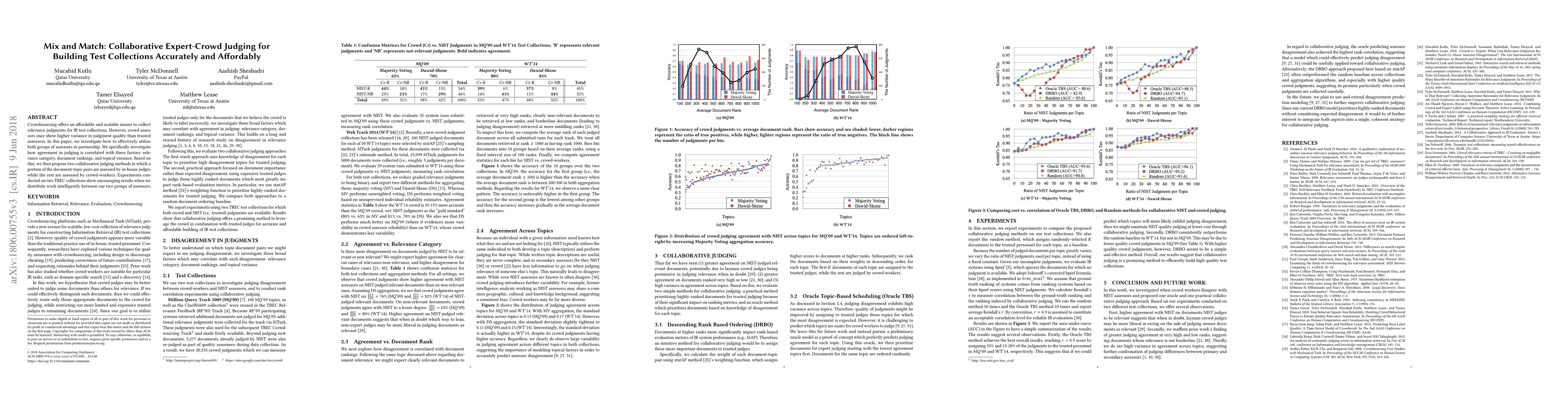 Crowdsourcing offers an affordable and scalable means to collect relevance judgments for IR test collections. However, crowd assessors may show higher variance in judgment quality than trusted assessors. In this paper, we investigate how to effectively utilize both groups of assessors in partnership. We specifically investigate how agreement in judging is correlated with three factors: relevance category, document rankings, and topical variance. Based on this, we then propose two collaborative judging methods in which a portion of the document-topic pairs are assessed by in-house judges while the rest are assessed by crowd-workers. Experiments conducted on two TREC collections show encouraging results when we distribute work intelligently between our two groups of assessors.