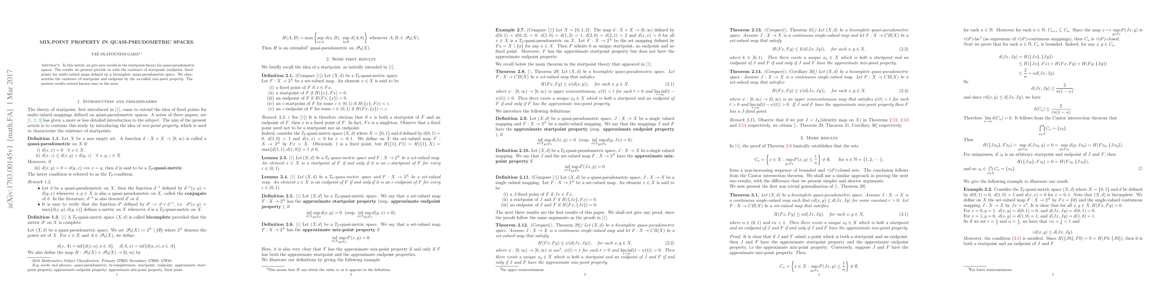 This paper explores the mix-point property in quasi-pseudometric spaces, establishing the existence of startpoints, endpoints, and fixed points for multi-valued maps on bicomplete quasi-pseudometric spaces. The findings extend existing theories in startpoint theory.