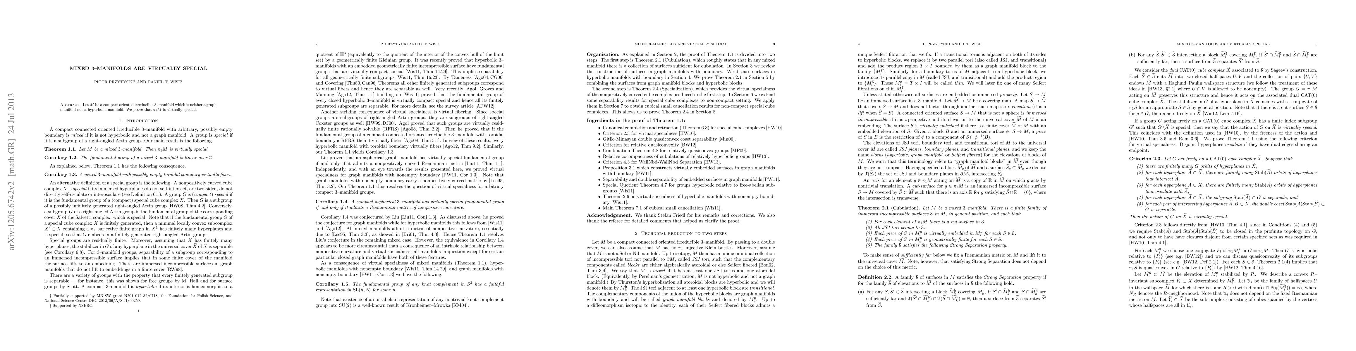 Summary: The paper proves that compact oriented irreducible 3-manifolds, excluding graph and hyperbolic manifolds, have a virtually special fundamental group, indicating a structure that can be approximated by special groups.