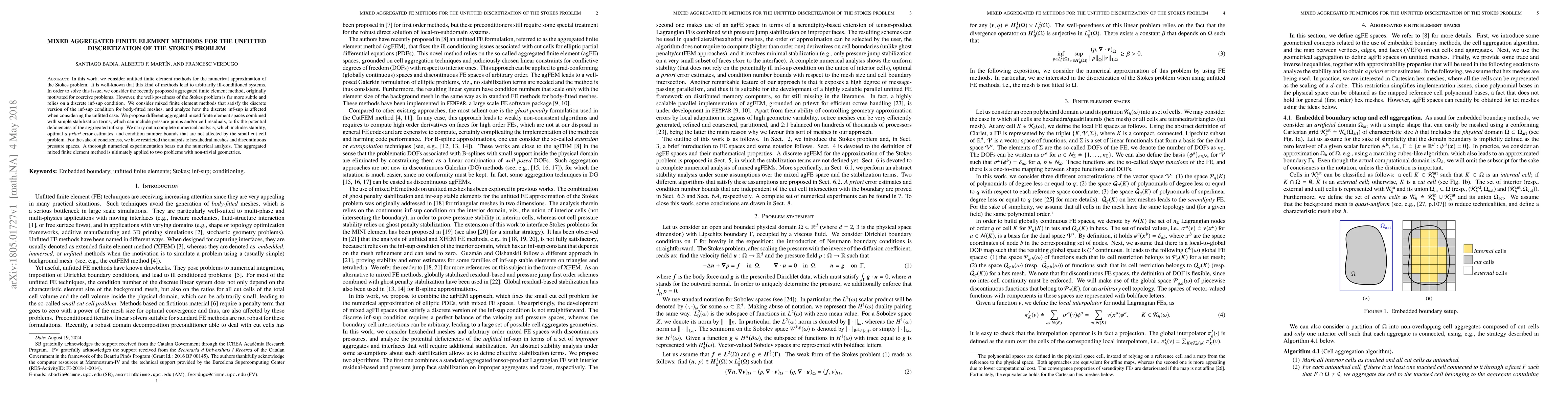 This paper proposes mixed aggregated finite element methods for the unfitted discretization of the Stokes problem, addressing the issue of ill-conditioned systems. It introduces stabilization techniques to satisfy the discrete inf-sup condition and provides a numerical analysis including stability, error estimates, and condition number bounds, validated through experiments on non-trivial geometries.