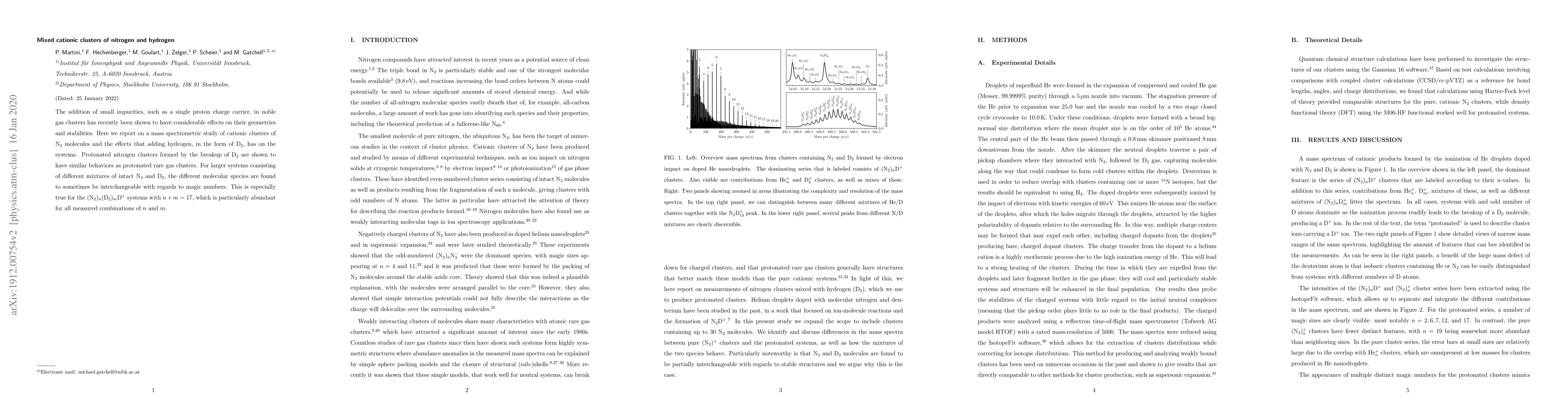 The addition of small impurities, such as a single proton charge carrier, in noble gas clusters has recently been shown to have considerable effects on their geometries and stabilities. Here we report on a mass spectrometric study of cationic clusters of N$_2$ molecules and the effects that adding hydrogen, in the form of D$_2$, has on the systems. Protonated nitrogen clusters formed by the breakup of D$_2$ are shown to have similar behaviors as protonated rare gas clusters. For larger systems consisting of different mixtures of intact N$_2$ and D$_2$, the different molecular species are found to sometimes be interchangeable with regards to magic numbers. This is especially true for the (N$_2$)$_n$(D$_2$)$_m$D$^+$ systems with $n+m=17$, which is particularly abundant for all measured combinations of $n$ and $m$.