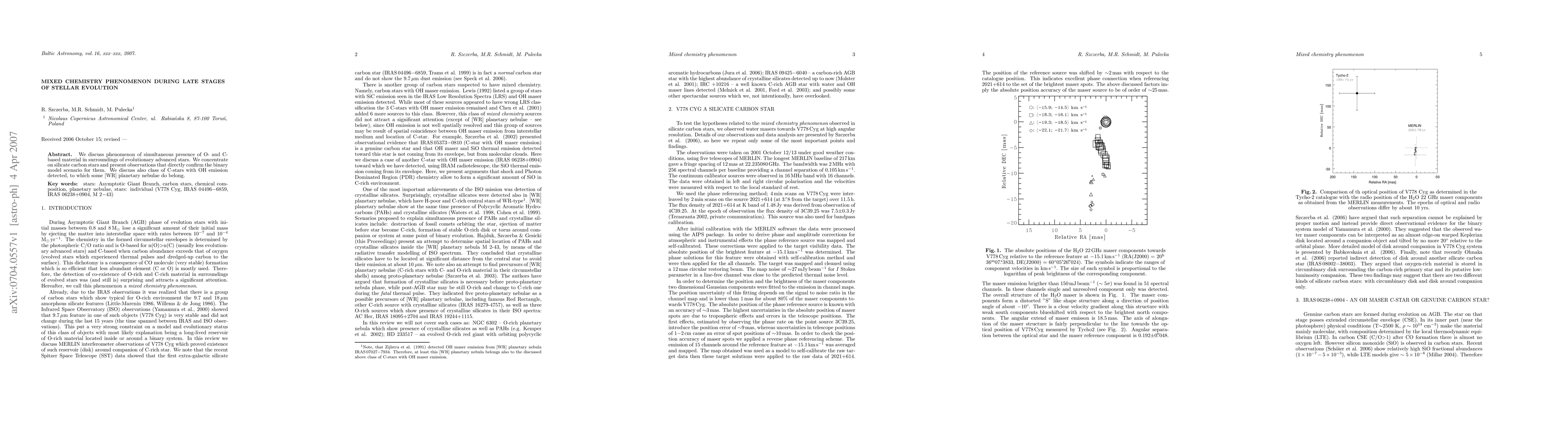 We discuss phenomenon of simultaneous presence of O- and C-based material in surroundings of evolutionary advanced stars. We concentrate on silicate carbon stars and present observations that directly confirm the binary model scenario for them. We discuss also class of C-stars with OH emission detected, to which some [WR] planetary nebulae do belong.