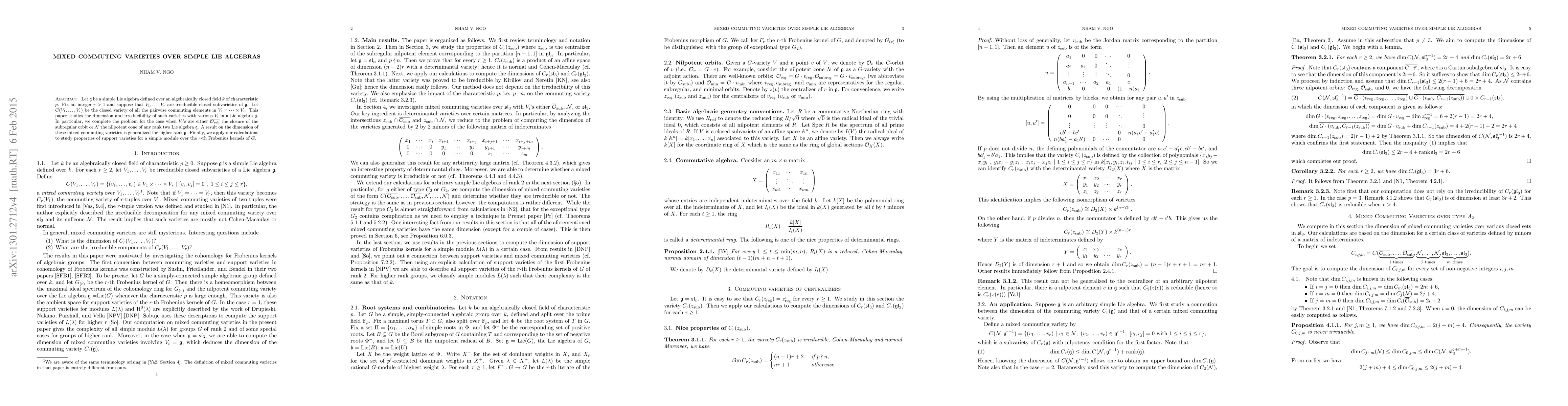 Let $\mathfrak{g}$ be a simple Lie algebra defined over an algebraically closed field $k$ of characteristic $p$. Fix an integer $r>1$ and suppose that $V_1,\ldots,V_r$ are irreducible closed subvarieties of $\mathfrak{g}$. Let $C(V_1,\ldots,V_r)$ be the closed variety of all the pairwise commuting elements in $V_1\times\cdots\times V_r$. This paper studies the dimension and irreducibility of such varieties with various $V_i$ in a Lie algebra $\mathfrak{g}$. In particular, we complete the problem for the case when $V_i$'s are either $\overline{\mathcal{O}_{\text{sub}}}$ the closure of the subregular orbit or $\mathcal{N}$ the nilpotent cone of any rank two Lie algebra $\mathfrak{g}$. A result on the dimension of these mixed commuting varieties is generalized for higher ranks. Finally, we apply our calculations to study properties of support varieties for a simple module over the $r$-th Frobenius kernels of $G$.