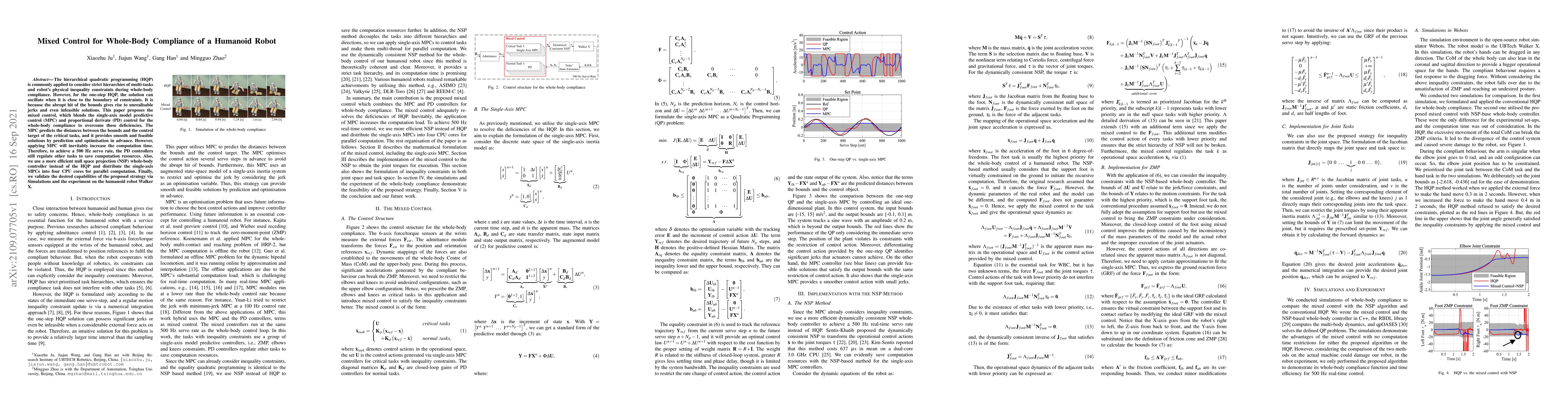 Researchers propose a mixed control strategy to improve whole-body compliance in humanoid robots, combining model predictive control and proportional derivative control to overcome limitations of traditional hierarchical quadratic programming.
