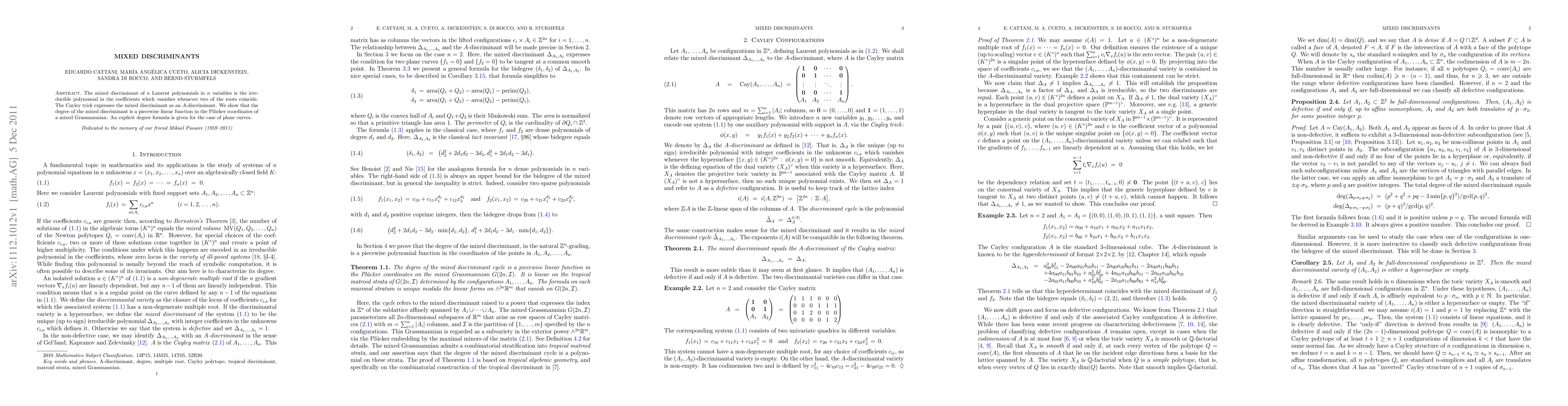 The mixed discriminant of n Laurent polynomials in n variables is the irreducible polynomial in the coefficients which vanishes whenever two of the roots coincide. The Cayley trick expresses the mixed discriminant as an A-discriminant. We show that the degree of the mixed discriminant is a piecewise linear function in the Plucker coordinates of a mixed Grassmannian. An explicit degree formula is given for the case of plane curves.