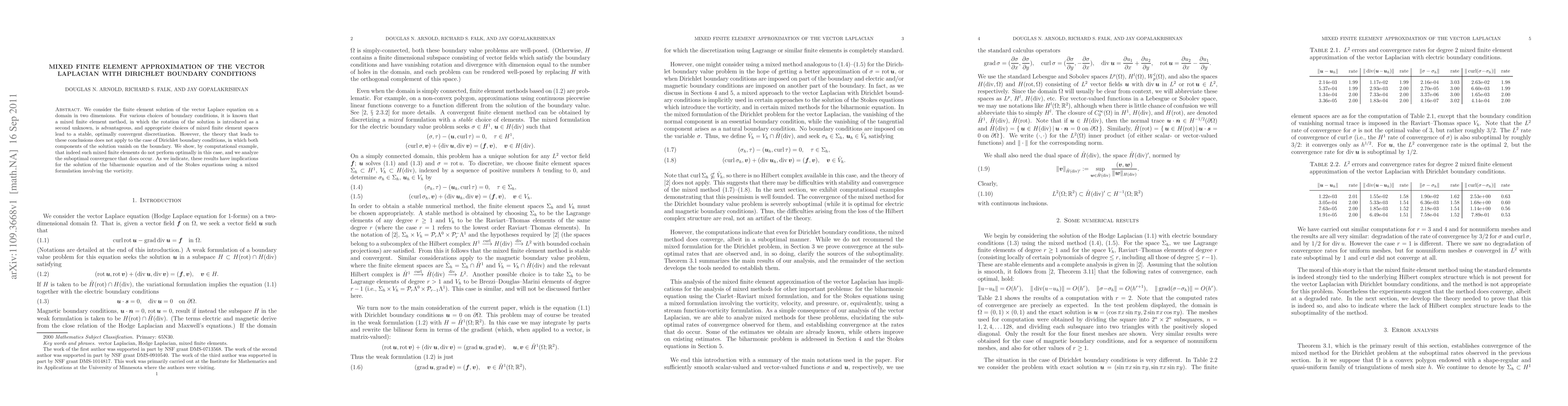 This paper investigates the mixed finite element method for solving the 2D vector Laplace equation under Dirichlet boundary conditions, demonstrating suboptimal convergence through computational examples. The findings suggest limitations in the applicability of mixed finite elements for problems involving vanishing boundary conditions, with implications for biharmonic and Stokes equations.