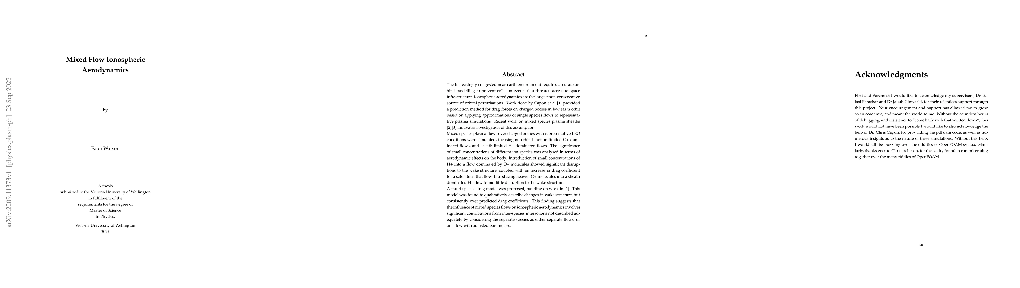 This paper introduces a multi-species drag model for ionospheric aerodynamics, highlighting the significant impact of mixed species plasma flows on orbital perturbations.