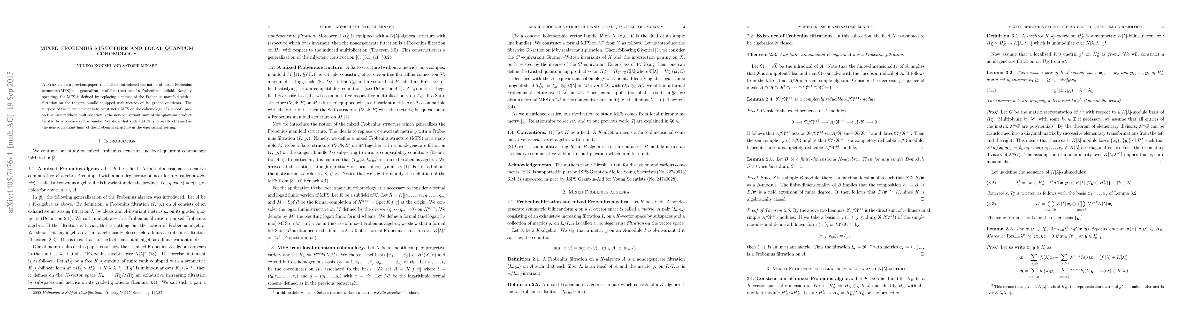 This paper extends the concept of mixed Frobenius structure to the local quantum cohomology of smooth projective varieties, replacing the traditional metric with a filtration on the tangent bundle. It demonstrates that this new structure emerges naturally as the non-equivariant limit of the equivariant Frobenius structure.