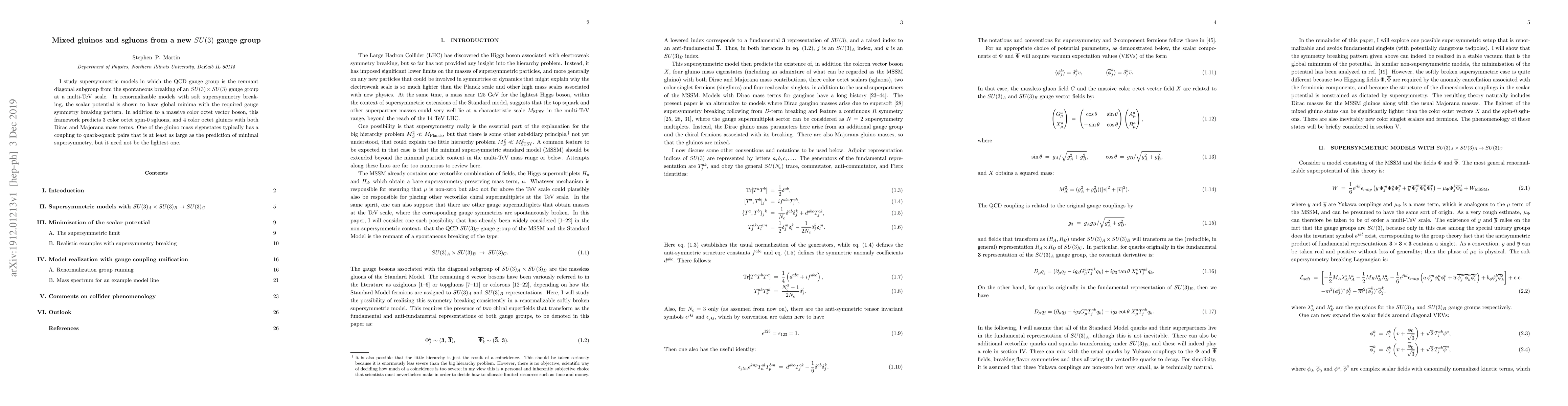 I study supersymmetric models in which the QCD gauge group is the remnant diagonal subgroup from the spontaneous breaking of an $SU(3) \times SU(3)$ gauge group at a multi-TeV scale. In renormalizable models with soft supersymmetry breaking, the scalar potential is shown to have global minima with the required gauge symmetry breaking pattern. In addition to a massive color octet vector boson, this framework predicts 3 color octet spin-0 sgluons, and 4 color octet gluinos with both Dirac and Majorana mass terms. One of the gluino mass eigenstates typically has a coupling to quark-squark pairs that is at least as large as the prediction of minimal supersymmetry, but it need not be the lightest one.