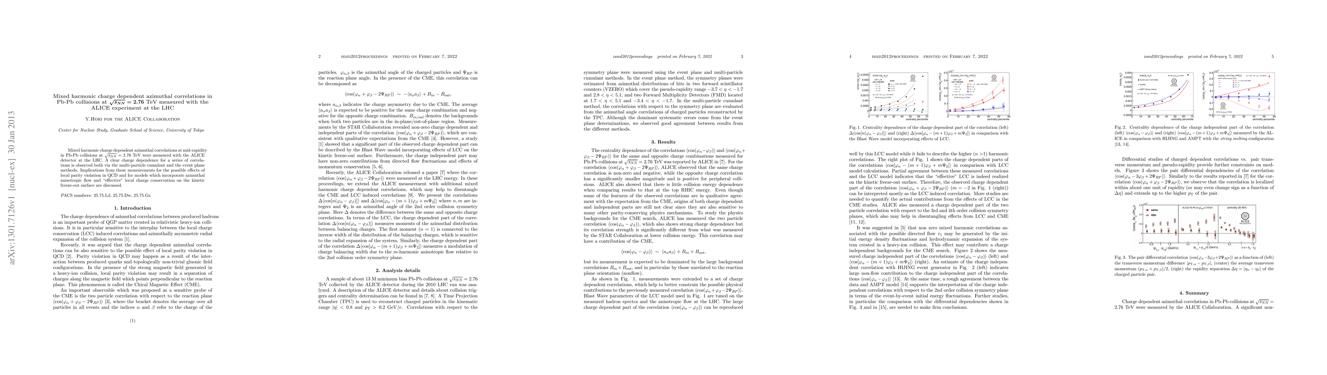 The ALICE experiment at the LHC measured mixed harmonic azimuthal correlations in Pb-Pb collisions at √s_NN = 2.76 TeV, revealing a clear charge dependence via multi-particle cumulant and event plane methods, which have implications for local parity violation in QCD and anisotropic flow models.