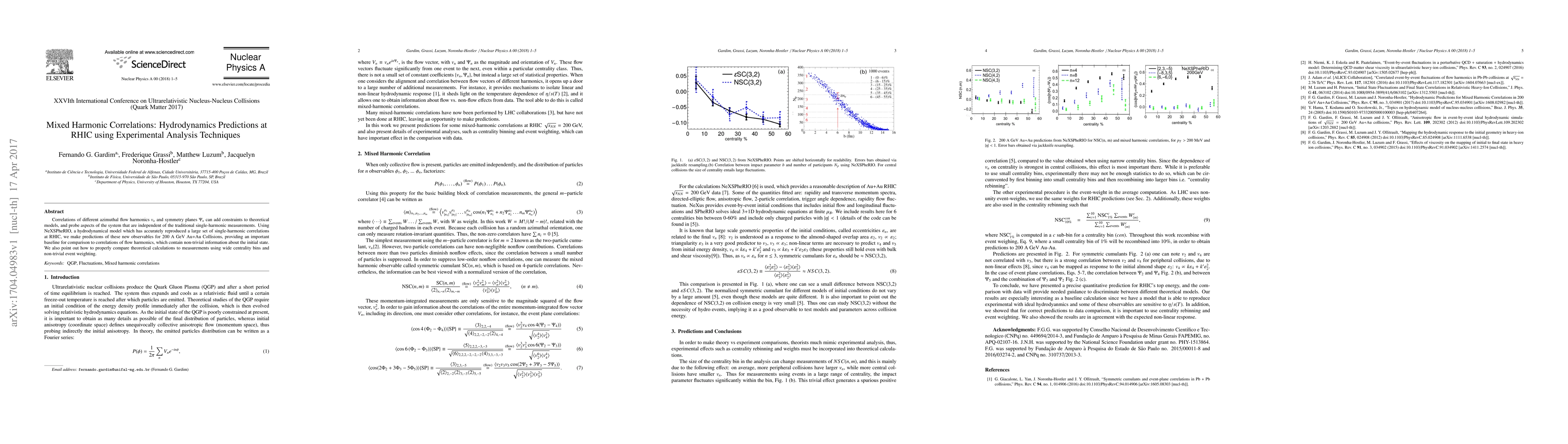 The research uses NeXSPheRIO, a hydrodynamic model, to predict mixed harmonic correlations for 200 A GeV Au+Au collisions at RHIC, providing a baseline for comparison to experimental measurements. It details experimental analysis techniques such as centrality binning and event weighting.
