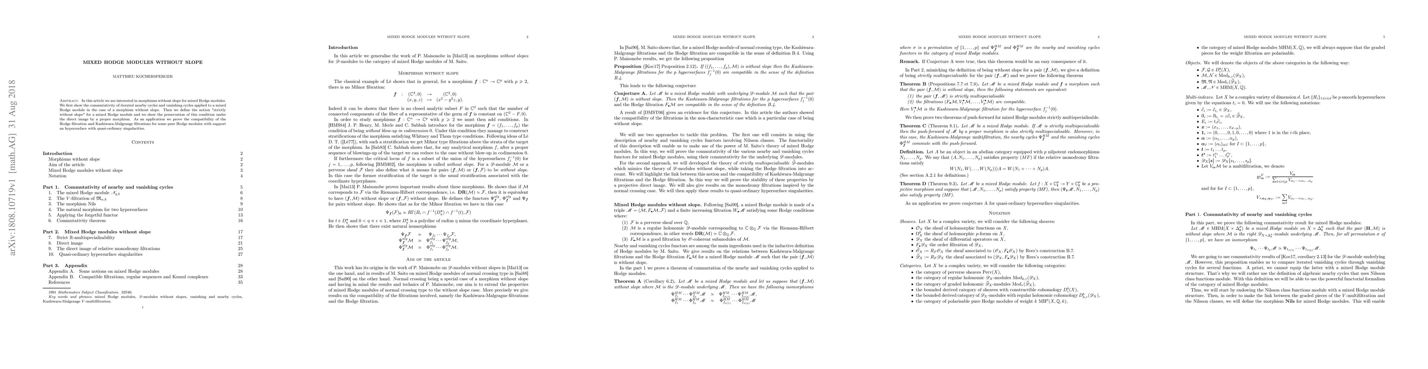 The paper employs techniques from mixed Hodge module theory to study morphisms without slope, utilizing commutativity of iterated nearby and vanishing cycles.