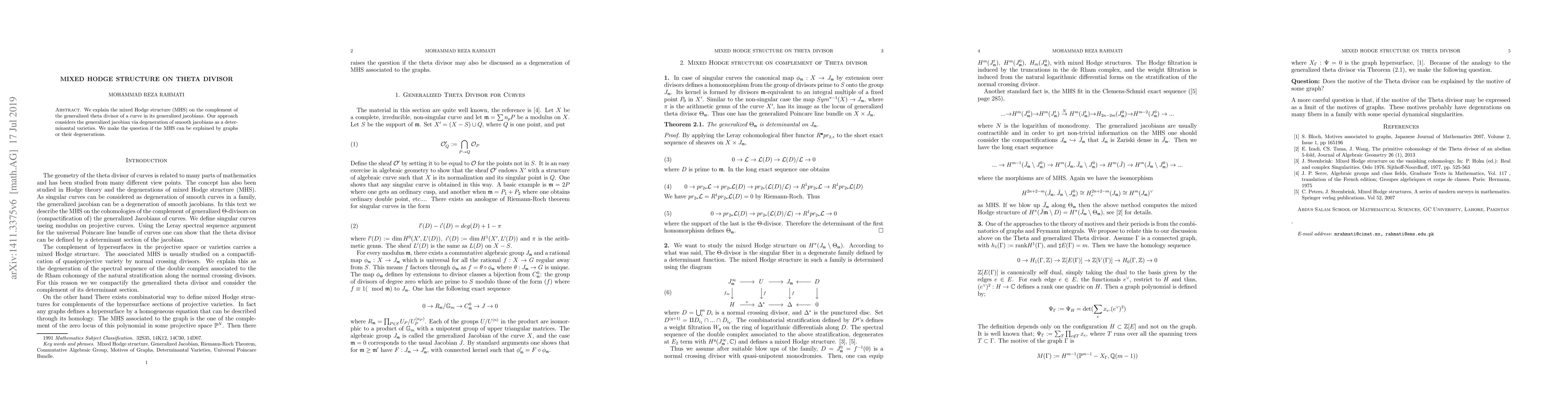 Researchers explain the mixed Hodge structure on the complement of a curve's generalized theta divisor using degeneration of smooth jacobians as a determinant variety, focusing on whether this structure can be explained by graphs or their degenerations.
