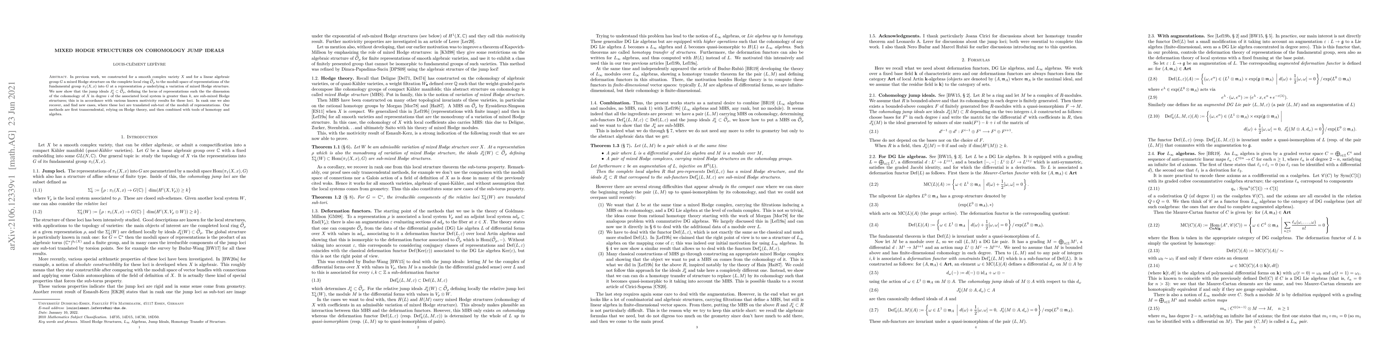 This paper constructs mixed Hodge structures on the complete local rings of moduli spaces of representations of the fundamental group of a smooth complex variety into a linear algebraic group. It further demonstrates that the jump ideals defining loci where the cohomology dimension exceeds a threshold are themselves sub-mixed Hodge structures, corroborated by motivicity results.