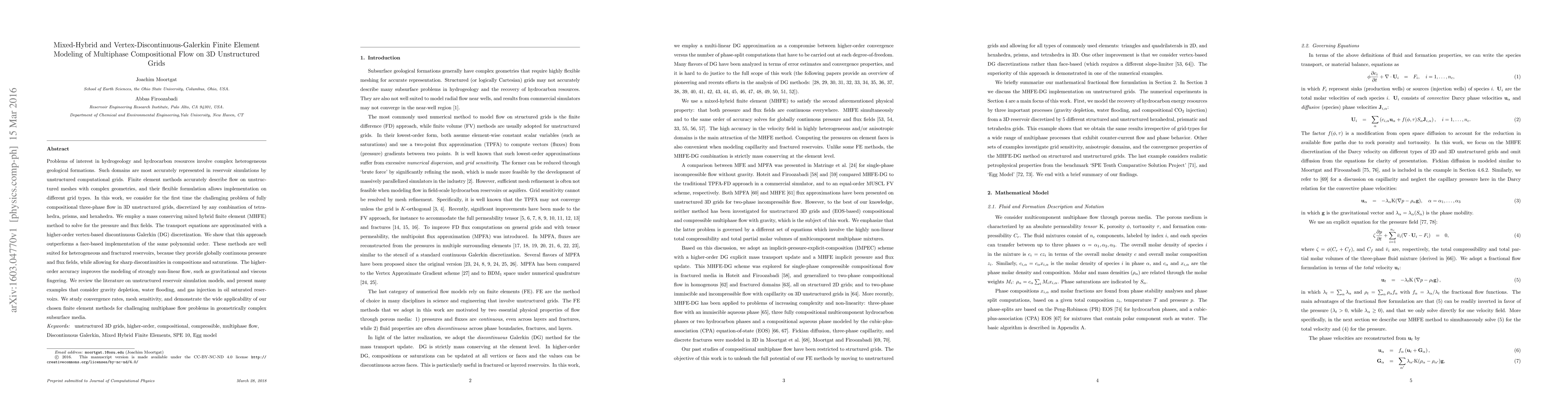 This paper introduces mixed-hybrid finite element and vertex-discontinuous Galerkin methods for modeling three-phase compositional flow on 3D unstructured grids, demonstrating superior performance over face-based implementations and applicability to complex geological formations. The approach provides globally continuous pressure and flux fields while accommodating sharp compositional discontinuities.