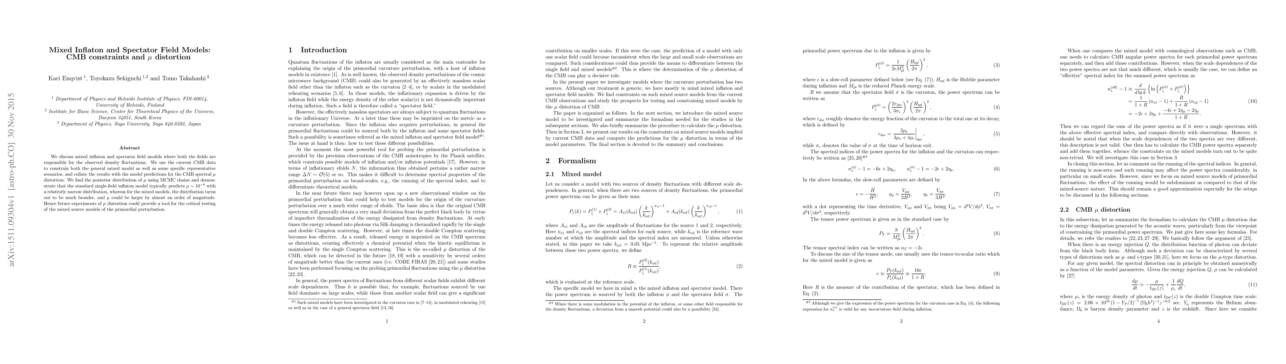 This paper investigates mixed inflaton and spectator field models for density fluctuations, using CMB data to constrain these models. It finds that while single-field models predict a narrow range for $\mu$ distortion, mixed models show a broader distribution, suggesting future $\mu$ distortion experiments could test these mixed source models effectively.