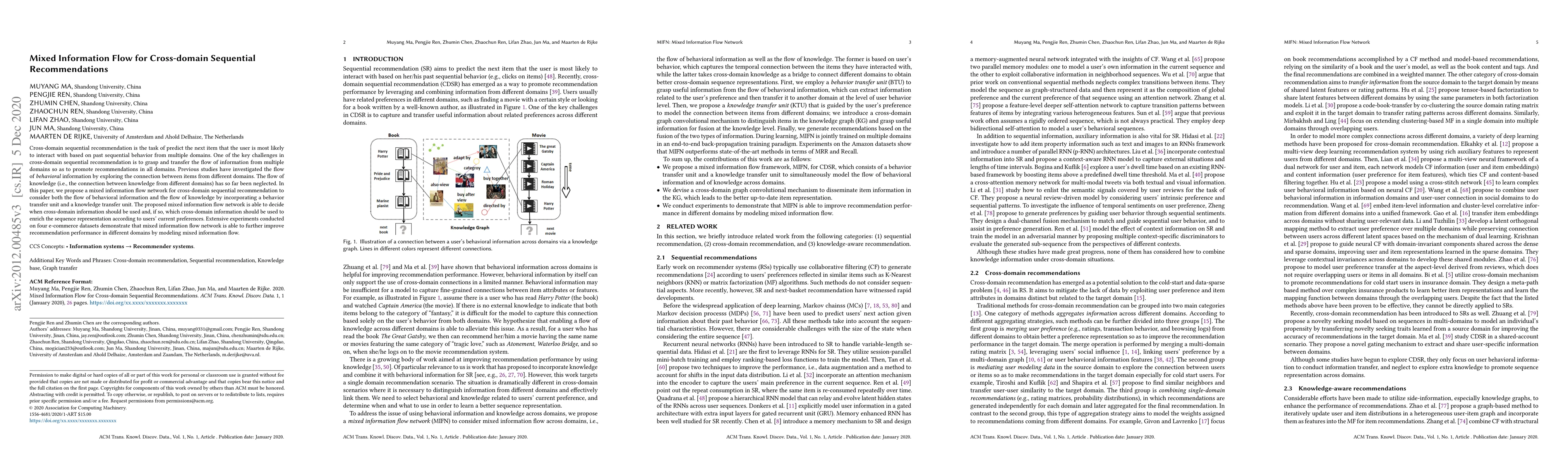 This paper proposes a mixed information flow network for cross-domain sequential recommendations, incorporating both behavioral and knowledge information flows to enhance recommendation performance. Experiments show improved results across multiple domains by effectively utilizing cross-domain information.