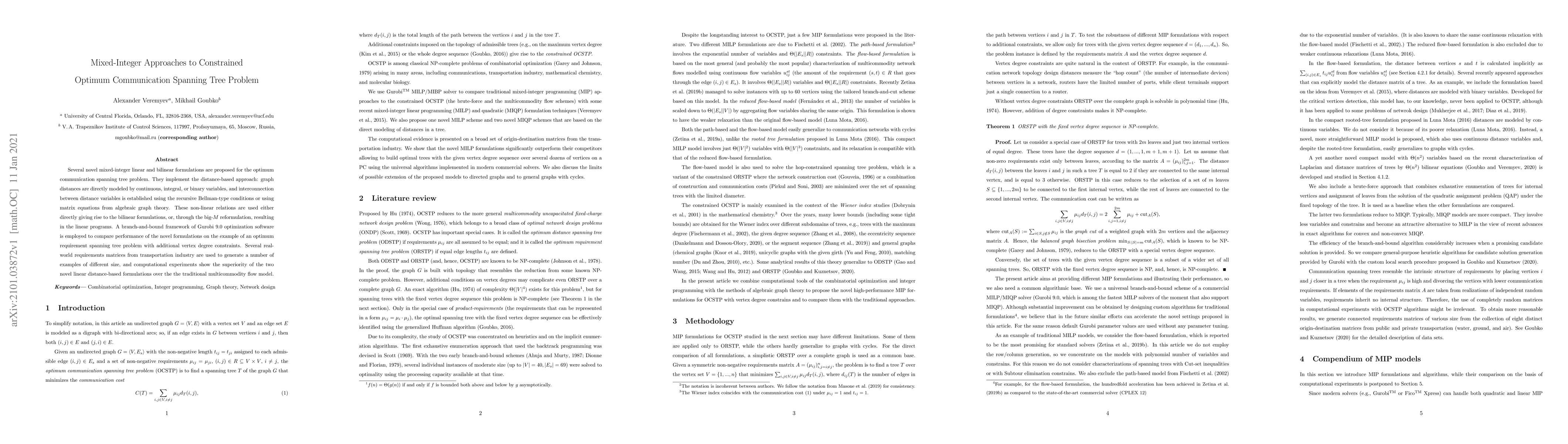 Researchers developed new mixed-integer approaches to optimize communication spanning tree problems, outperforming traditional methods in real-world applications.