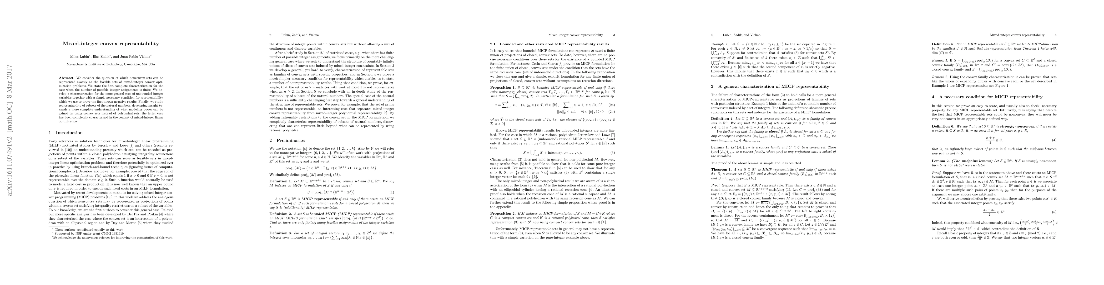 This paper provides a complete characterization for representing nonconvex sets using mixed-integer convex optimization, particularly when integer variables are bounded. It also extends the analysis to unbounded integer variables and identifies a necessary condition for representability, presenting the first known negative results in this context.
