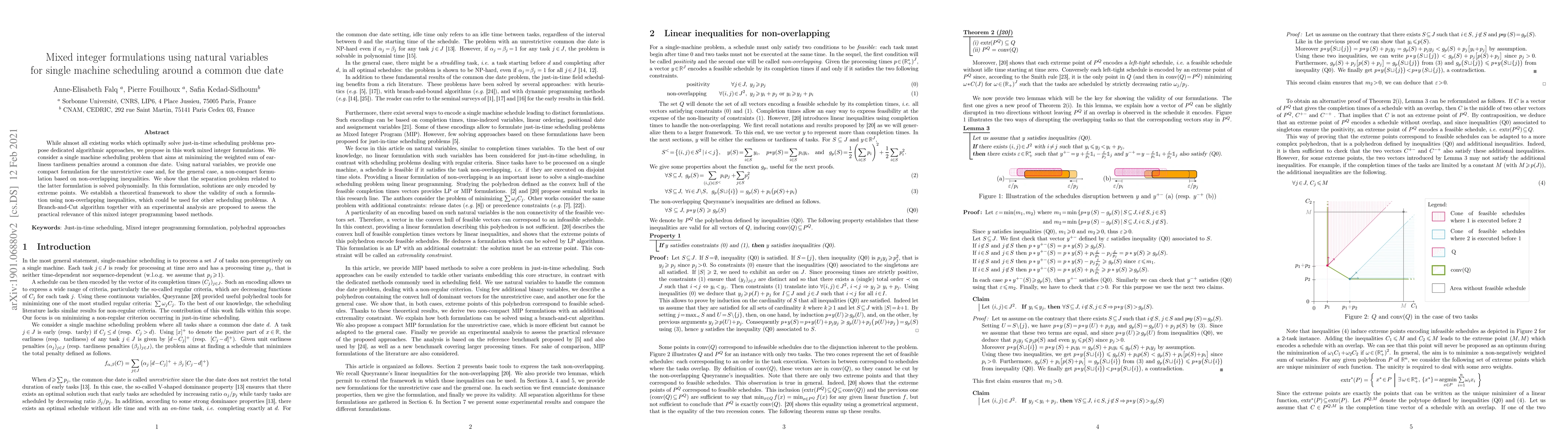 While almost all existing works which optimally solve just-in-time scheduling problems propose dedicated algorithmic approaches, we propose in this work mixed integer formulations. We consider a single machine scheduling problem that aims at minimizing the weighted sum of earliness tardiness penalties around a common due-date. Using natural variables, we provide one compact formulation for the unrestrictive case and, for the general case, a non-compact formulation based on non-overlapping inequalities. We show that the separation problem related to the latter formulation is solved polynomially. In this formulation, solutions are only encoded by extreme points. We establish a theoretical framework to show the validity of such a formulation using non-overlapping inequalities, which could be used for other scheduling problems. A Branch-and-Cut algorithm together with an experimental analysis are proposed to assess the practical relevance of this mixed integer programming based methods.