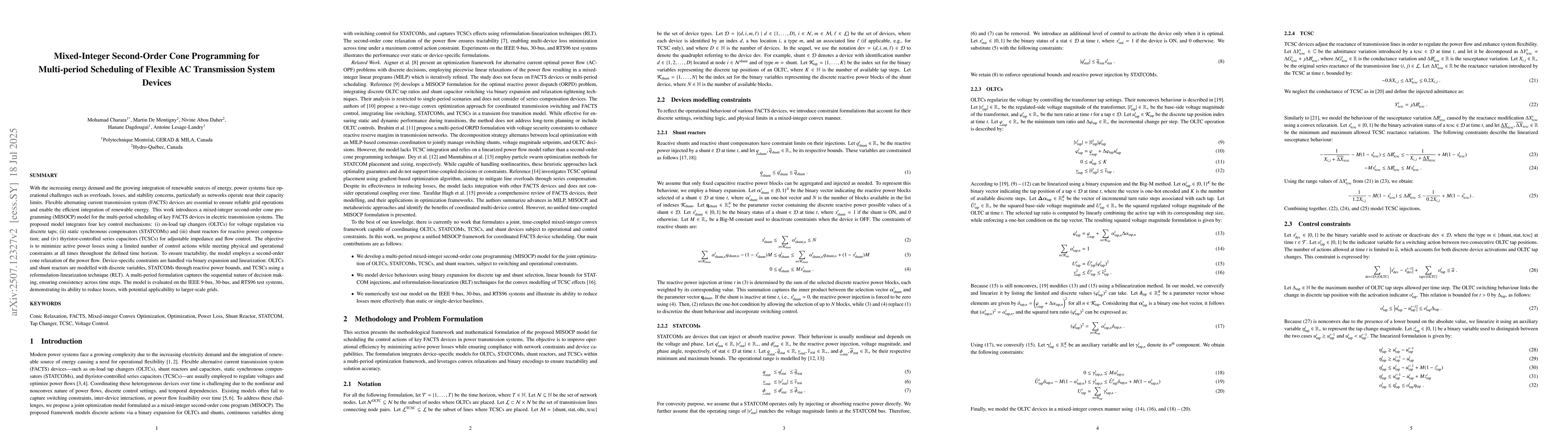 With the increasing energy demand and the growing integration of renewable sources of energy, power systems face operational challenges such as overloads, losses, and stability concerns, particularly as networks operate near their capacity limits. Flexible alternating current transmission system (FACTS) devices are essential to ensure reliable grid operations and enable the efficient integration of renewable energy. This work introduces a mixed-integer second-order cone programming (MISOCP) model for the multi-period scheduling of key FACTS devices in electric transmission systems. The proposed model integrates four key control mechanisms: (i) on-load tap changers (OLTCs) for voltage regulation via discrete taps; (ii) static synchronous compensators (STATCOMs) and (iii) shunt reactors for reactive power compensation; and (iv) thyristor-controlled series capacitors (TCSCs) for adjustable impedance and flow control. The objective is to minimize active power losses using a limited number of control actions while meeting physical and operational constraints at all times throughout the defined time horizon. To ensure tractability, the model employs a second-order cone relaxation of the power flow. Device-specific constraints are handled via binary expansion and linearization: OLTCs and shunt reactors are modelled with discrete variables, STATCOMs through reactive power bounds, and TCSCs using a reformulation-linearization technique (RLT). A multi-period formulation captures the sequential nature of decision making, ensuring consistency across time steps. The model is evaluated on the IEEE 9-bus, 30-bus, and RTS96 test systems, demonstrating its ability to reduce losses, with potential applicability to larger-scale grids.