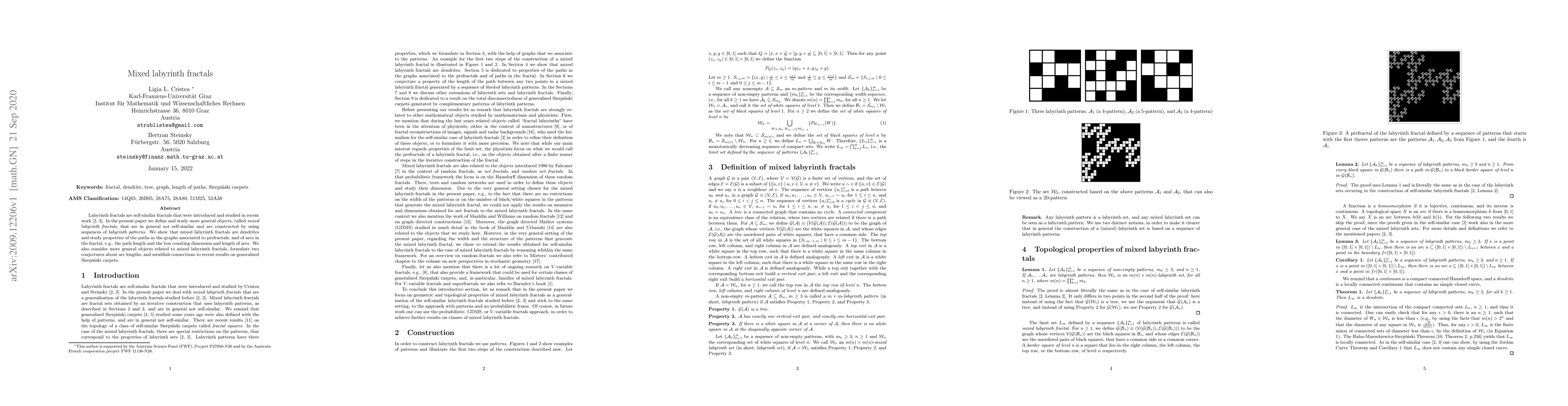 This paper introduces mixed labyrinth fractals, which differ from self-similar labyrinth fractals by using sequences of labyrinth patterns, and shows they are dendrites. It studies properties like path length, box counting dimension, and conjectures about arc lengths, linking these fractals to generalized Sierpinski carpets.