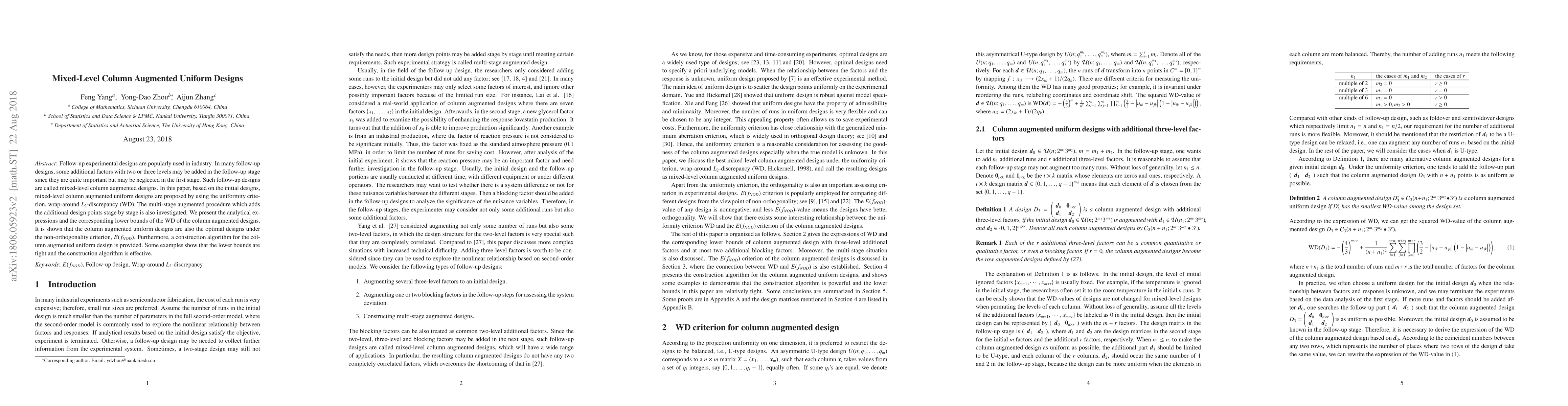 This paper proposes mixed-level column augmented uniform designs for follow-up experimental setups, optimizing them using the wrap-around $L_2$-discrepancy criterion. The study also investigates a multi-stage augmentation procedure and provides an effective construction algorithm, demonstrating its optimality under the non-orthogonality criterion.