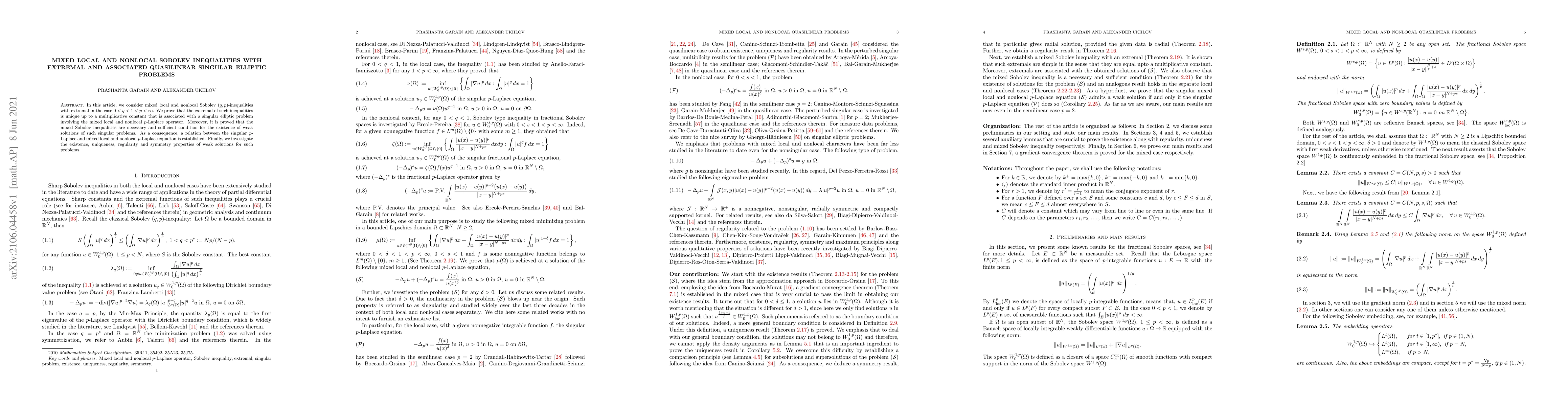 This paper investigates mixed local and nonlocal Sobolev $(q,p)$-inequalities for $0<q<1<p<\infty$, proving their uniqueness and establishing them as necessary and sufficient conditions for weak solutions of associated singular elliptic problems involving a mixed $p$-Laplace operator.