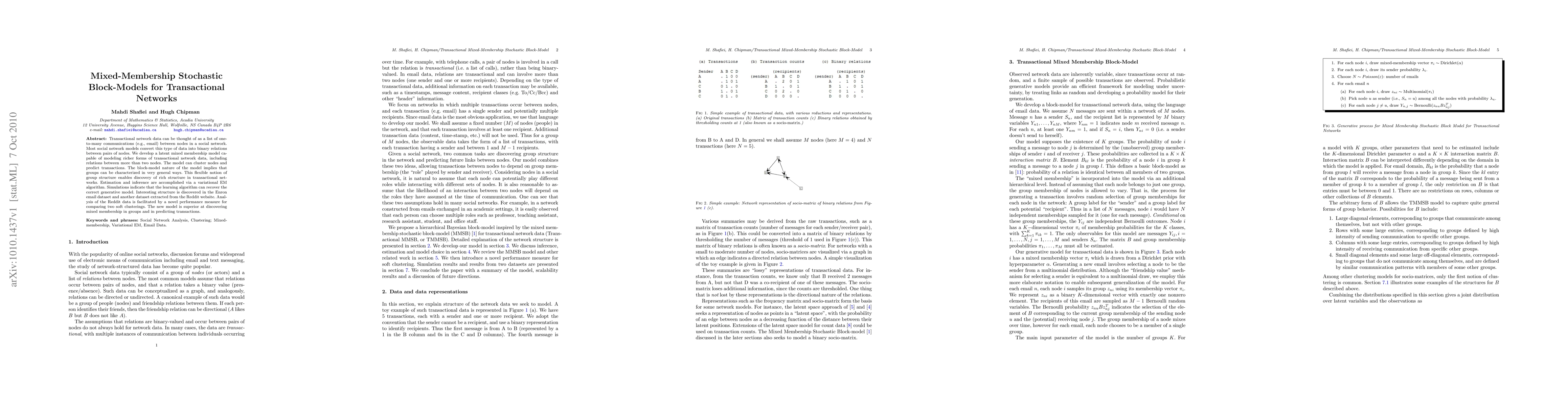 This paper introduces a mixed-membership stochastic block-model for transactional networks, capable of capturing complex, multi-node relations and predicting transactions. The model outperforms existing methods by leveraging a variational EM algorithm and is demonstrated to effectively uncover intricate structures in datasets like Enron emails and Reddit interactions.