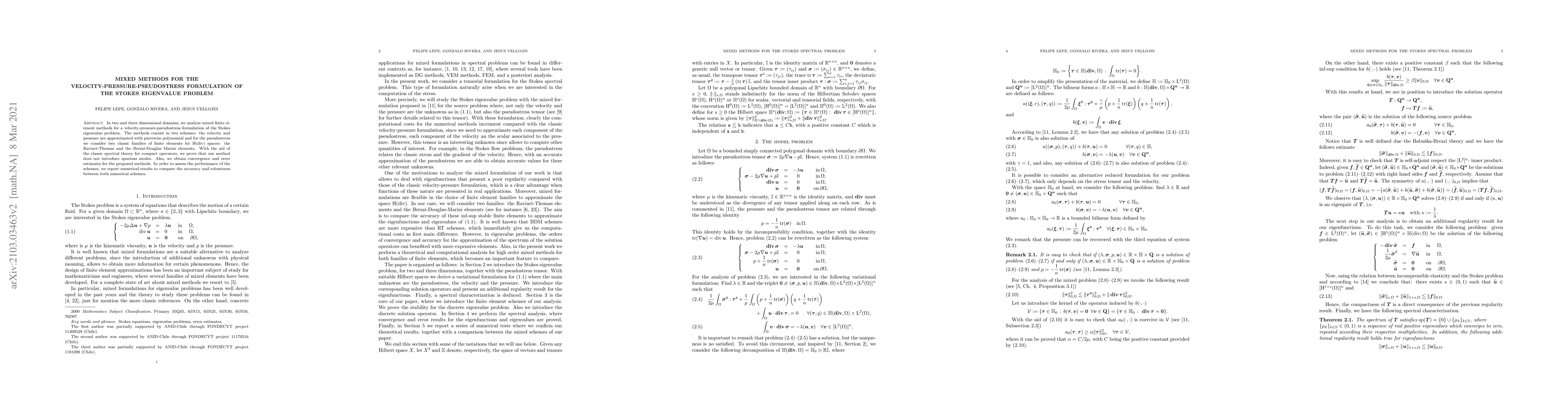 This paper investigates mixed finite element methods for solving the Stokes eigenvalue problem in 2D and 3D domains using velocity-pressure-pseudostress formulations. The study compares two schemes based on Raviart-Thomas and Brezzi-Douglas Marini elements for pseudostress, proving no spurious modes and providing convergence and error estimates, alongside numerical comparisons to assess accuracy and robustness.