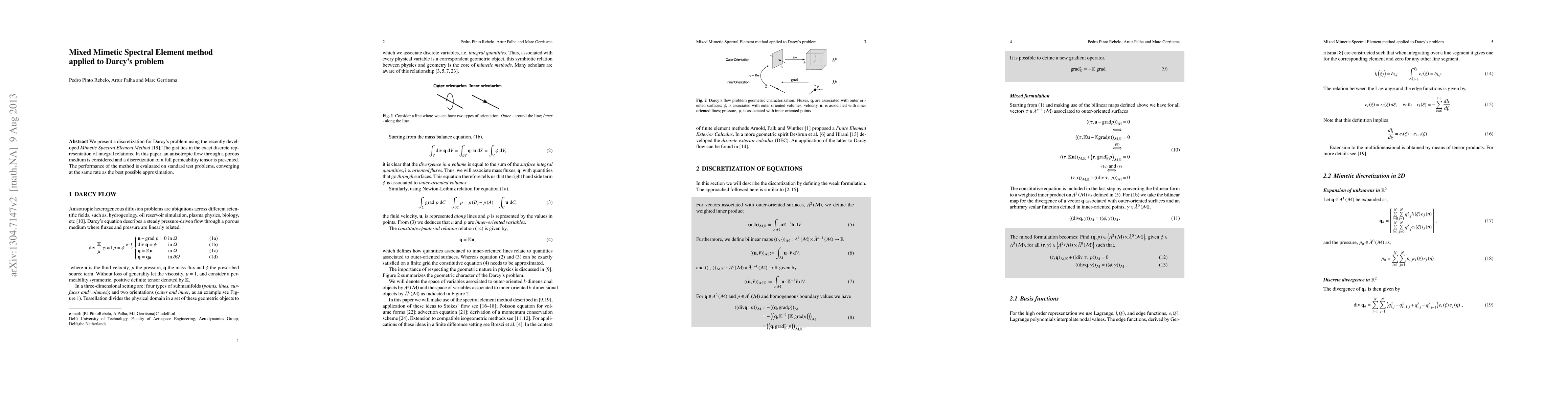 We present a discretization for Darcy's problem using the recently developed Mimetic Spectral Element Method. The gist lies in the exact discrete representation of integral relations. In this paper, an anisotropic flow through a porous medium is considered and a discretization of a full permeability tensor is presented. The performance of the method is evaluated on standard test problems, converging at the same rate as the best possible approximation.