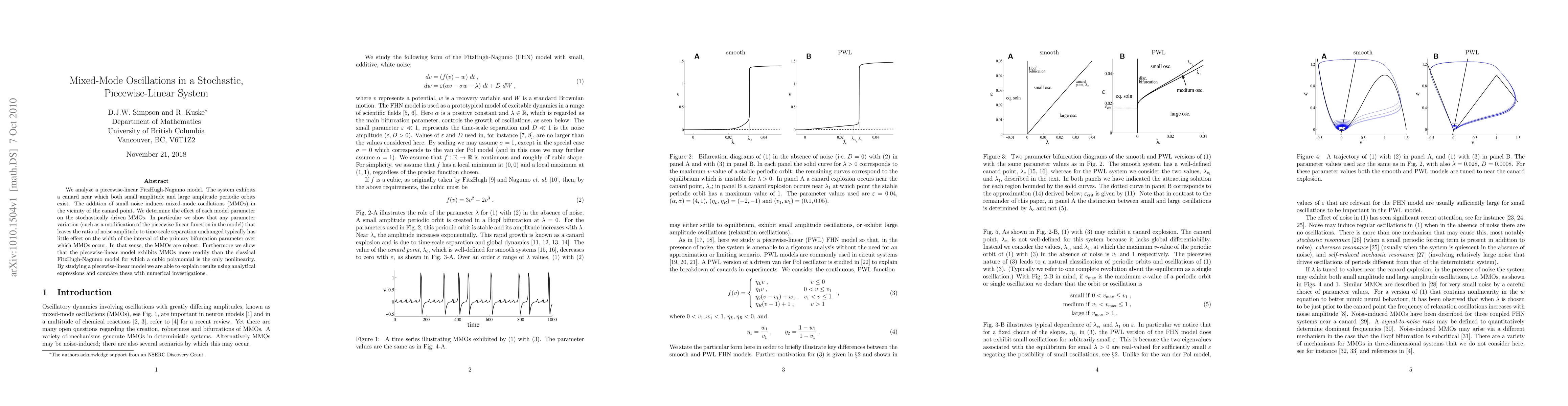 This paper investigates mixed-mode oscillations (MMOs) in a stochastic, piecewise-linear FitzHugh-Nagumo model, demonstrating that MMOs are robust to parameter variations that maintain the noise-to-time-scale separation ratio. The piecewise-linear model exhibits MMOs more readily than the classical cubic model, allowing for analytical explanations and numerical comparisons.