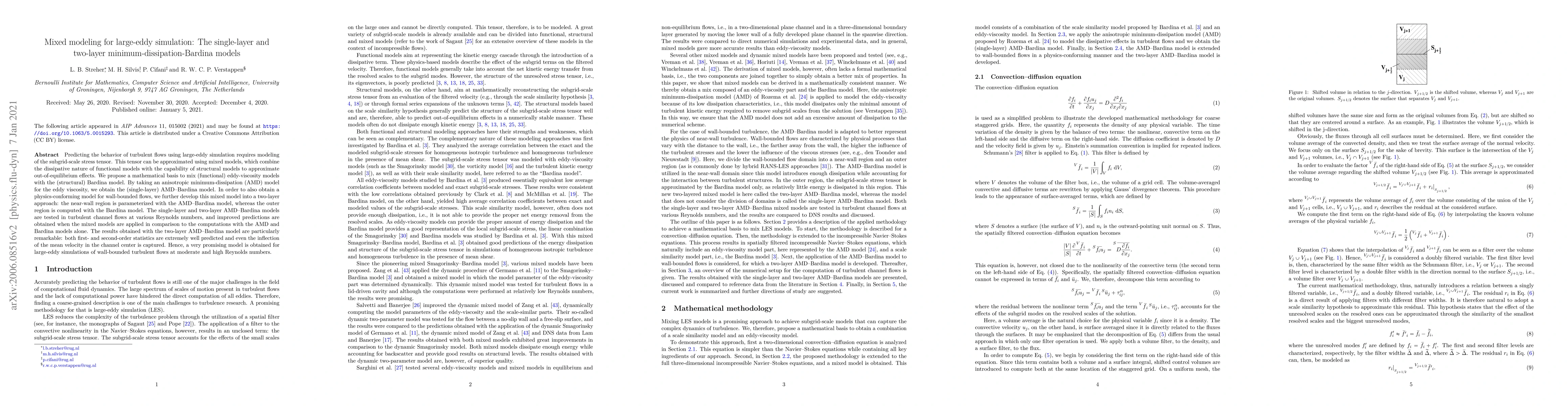 Predicting the behavior of turbulent flows using large-eddy simulation requires modeling of the subgrid-scale stress tensor. This tensor can be approximated using mixed models, which combine the dissipative nature of functional models with the capability of structural models to approximate out-of-equilibrium effects. We propose a mathematical basis to mix (functional) eddy-viscosity models with the (structural) Bardina model. By taking an anisotropic minimum-dissipation (AMD) model for the eddy viscosity, we obtain the (single-layer) AMD-Bardina model. In order to also obtain a physics-conforming model for wall-bounded flows, we further develop this mixed model into a two-layer approach: the near-wall region is parameterized with the AMD-Bardina model, whereas the outer region is computed with the Bardina model. The single-layer and two-layer AMD-Bardina models are tested in turbulent channel flows at various Reynolds numbers, and improved predictions are obtained when the mixed models are applied in comparison to the computations with the AMD and Bardina models alone. The results obtained with the two-layer AMD-Bardina model are particularly remarkable: both first- and second-order statistics are extremely well predicted and even the inflection of the mean velocity in the channel center is captured. Hence, a very promising model is obtained for large-eddy simulations of wall-bounded turbulent flows at moderate and high Reynolds numbers.