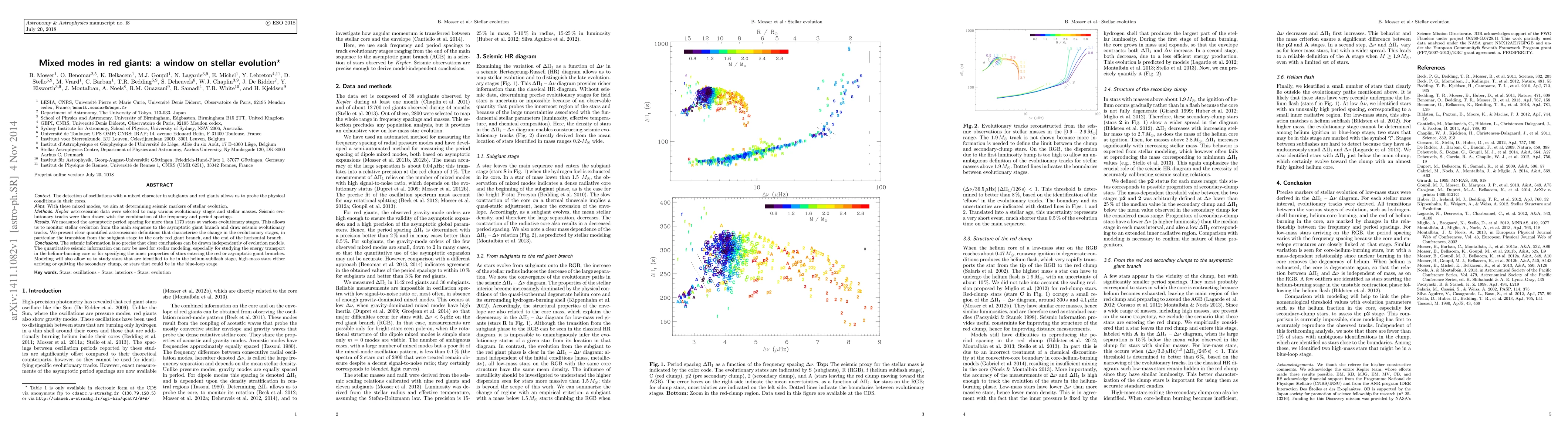 This paper investigates mixed oscillation modes in red giants to understand stellar evolution, using Kepler data to map evolutionary stages and derive seismic markers. The study provides precise asteroseismic definitions for transitions in stellar evolution, offering new insights for modeling energy transport and inner properties of stars.