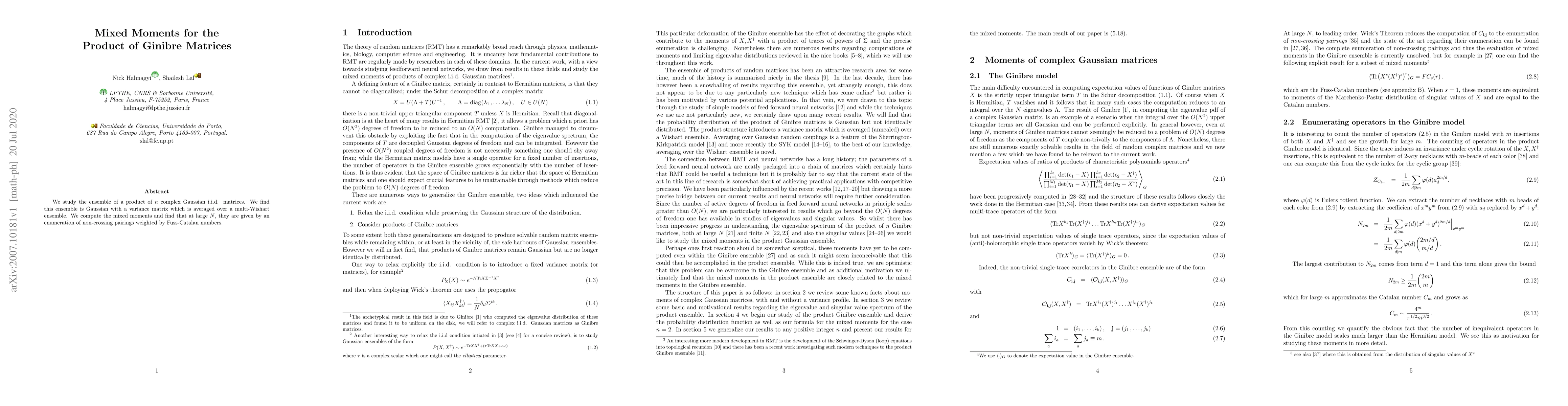 This paper investigates the product of n complex Gaussian independent and identically distributed (i.i.d.) matrices, revealing that the ensemble is Gaussian with a variance matrix derived from a multi-Wishart ensemble. The mixed moments are shown to be enumerated by non-crossing pairings, weighted by Fuss-Catalan numbers at large N.