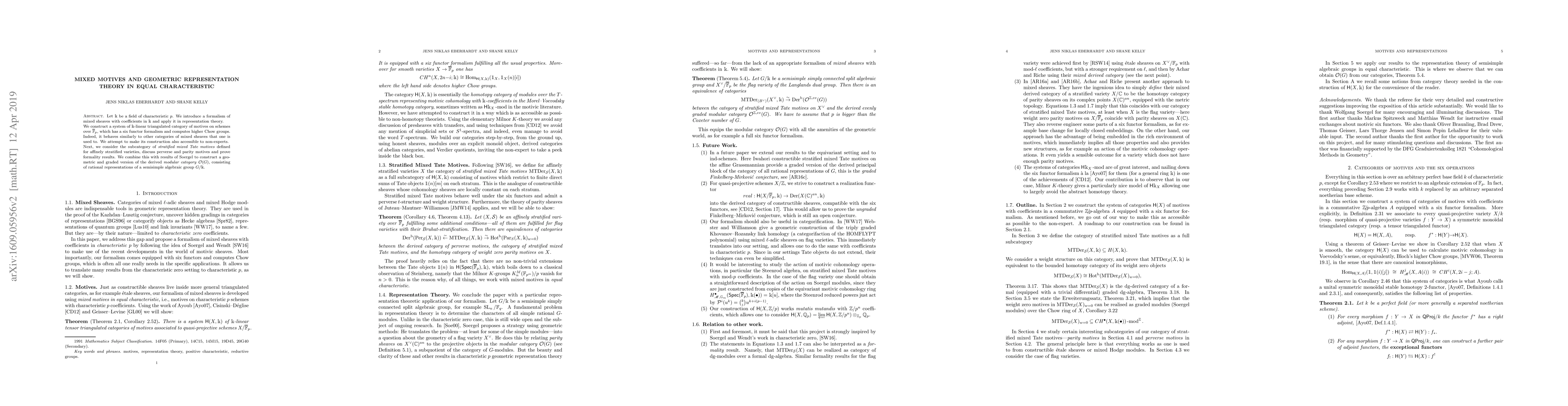 The paper introduces a formalism of mixed sheaves over fields of characteristic $p$ and constructs a $\mathbb{k}$-linear triangulated category of motives, showing it has a six functors formalism and computes higher Chow groups. It also explores the subcategory of stratified mixed Tate motives and builds a geometric version of Soergel's modular category $\mathscr O(G)$ for split semisimple groups, equipping it with a full six functor formalism.