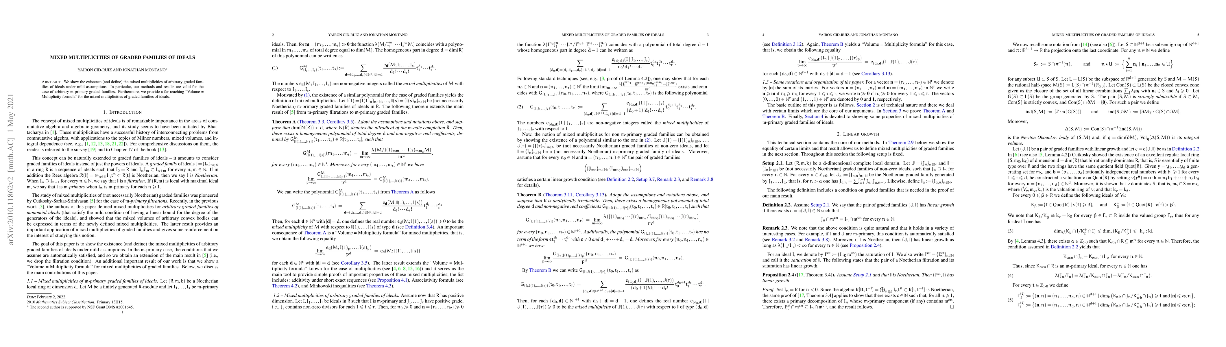 This paper establishes the existence of mixed multiplicities for arbitrary graded families of ideals under mild conditions, and proves a significant "Volume = Multiplicity" formula relating these multiplicities to the volumes of certain associated varieties.