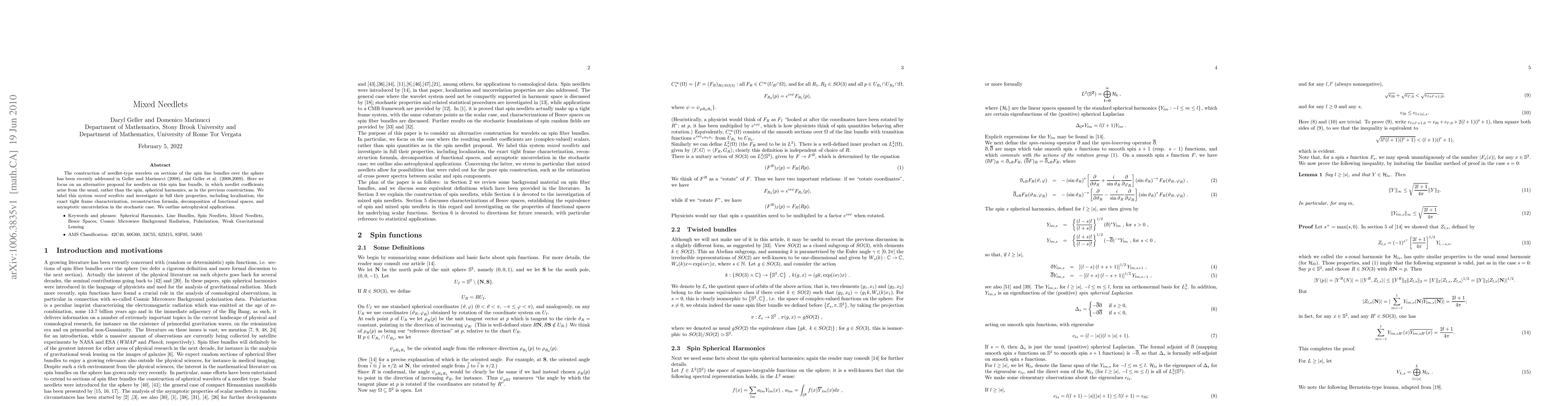 This paper introduces mixed needlets, a novel approach to needlet-type wavelets on spin line bundles over the sphere, using standard spherical harmonics instead of spin spherical harmonics. The study explores their properties, including localization, reconstruction, and applications in astrophysics.