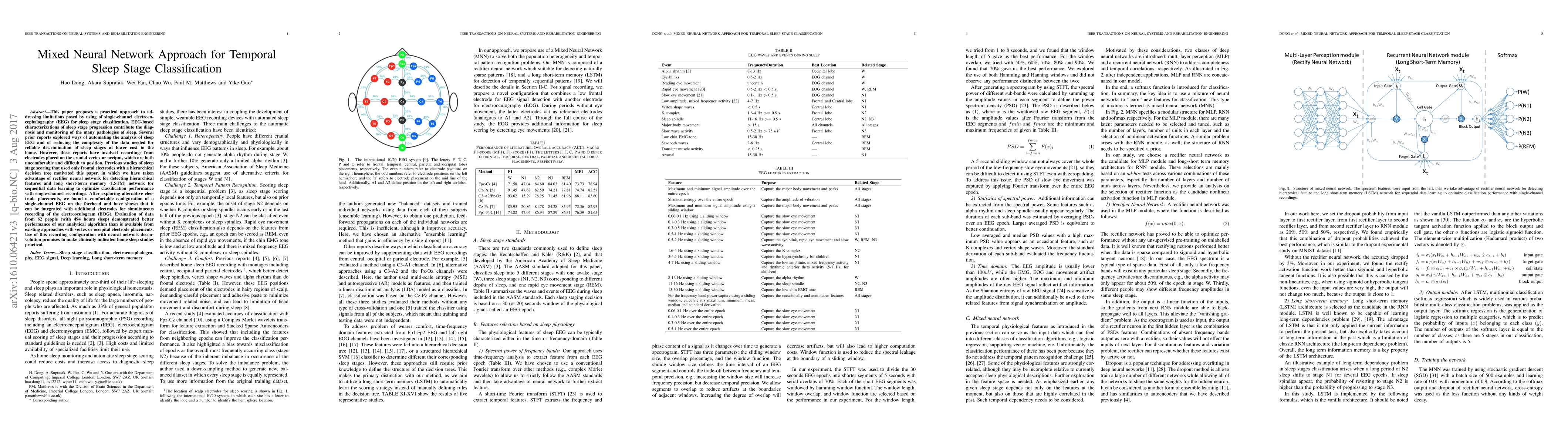 This paper proposes a mixed neural network approach using Rectifier Neural Networks and LSTM for enhanced temporal sleep stage classification using single-channel EEG recordings on the forehead, showing improved performance over traditional vertex or occipital placements. This method, tested on 494 hours of sleep data from 62 individuals, suggests a practical solution for cost-effective home sleep studies.